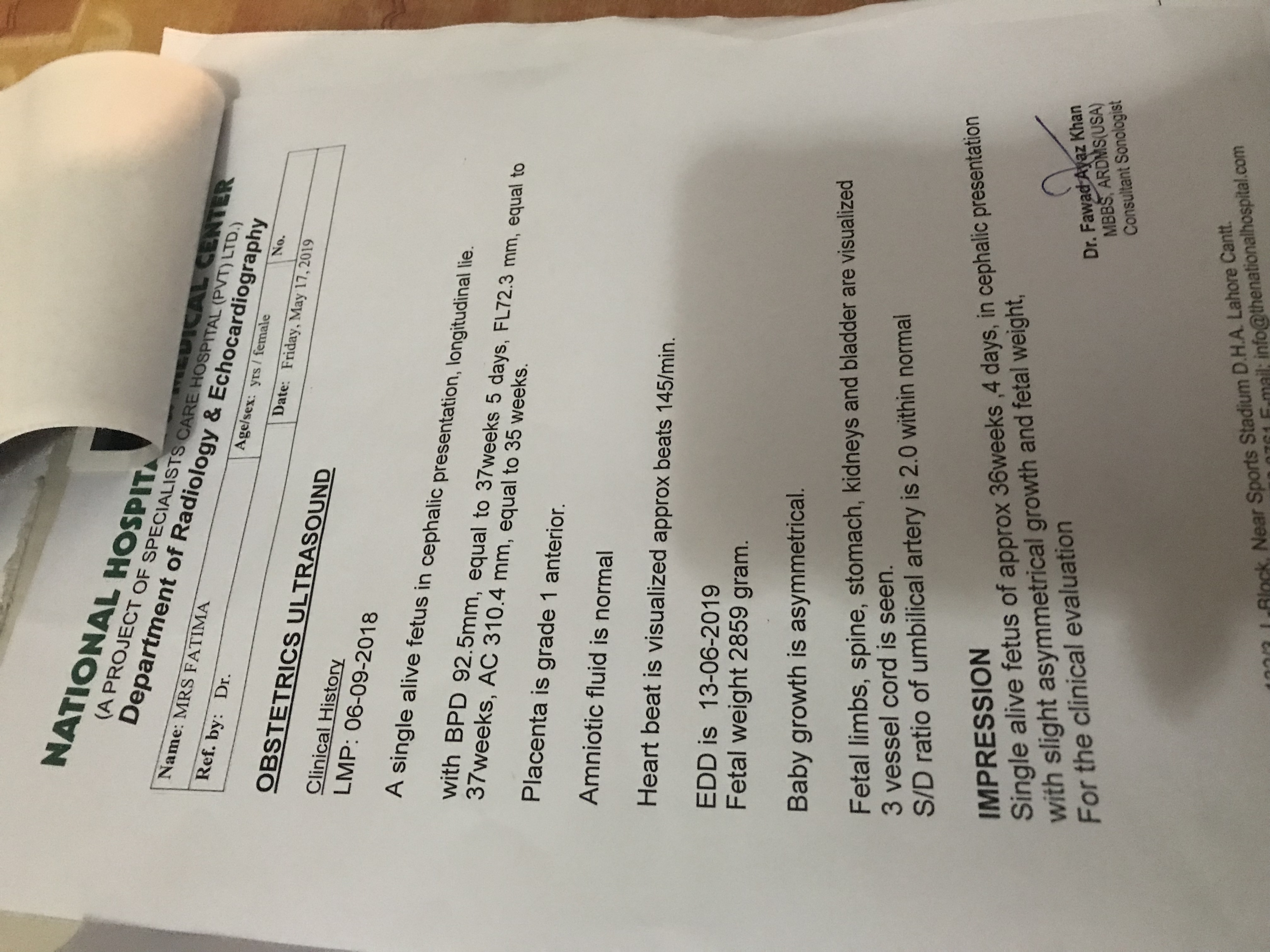 I posted on marhum but no one has replied yet! These are my 2 ultrasound by 2 different doctors in a week time My previous and regular ultrasound showed normal and my doctor never mention anything too but yesterday I went for ultrasound to a new doctor. Doctor fawad! He said my baby’s growth is asymmetrical. Can you please check? My doctor isn’t available till Tuesday and I’m very worried! I’m 9th months pregnant. My doctor never mentioned it neither my rasiologist! Although she did say a month back that my baby’s weight is 3 day behind but in my last ultrasound she said it’s all fine now. But the new Doctor I visited yesterday said about the growth thing! Please help me as I’m very worried! I hope it’s not an abnormality?
