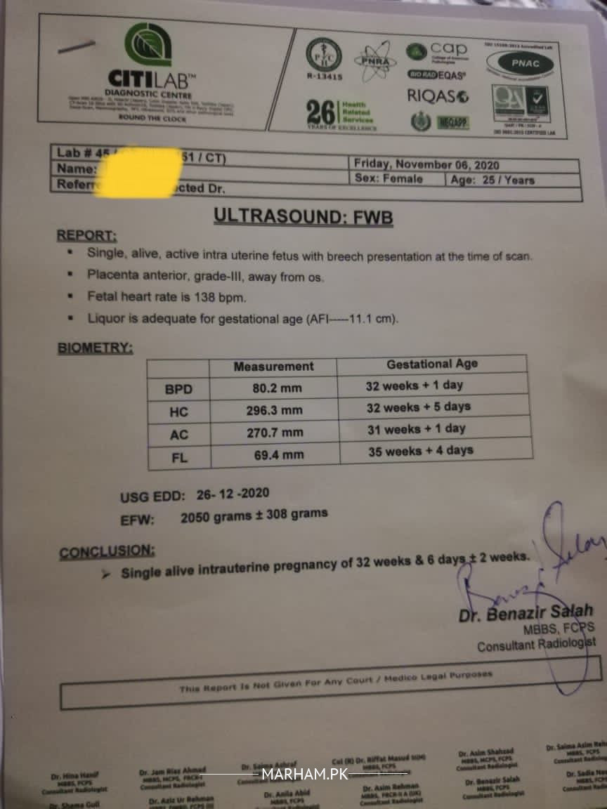 USG showing three weeks less then LMP. Also FL is same after three weeks what could be the issue. According to LmP it’s 38th week of pregnancy and by USG it’s 35 with breech First pregnancy. Should we go for C-Section in this week. I am attaching last two USG reports