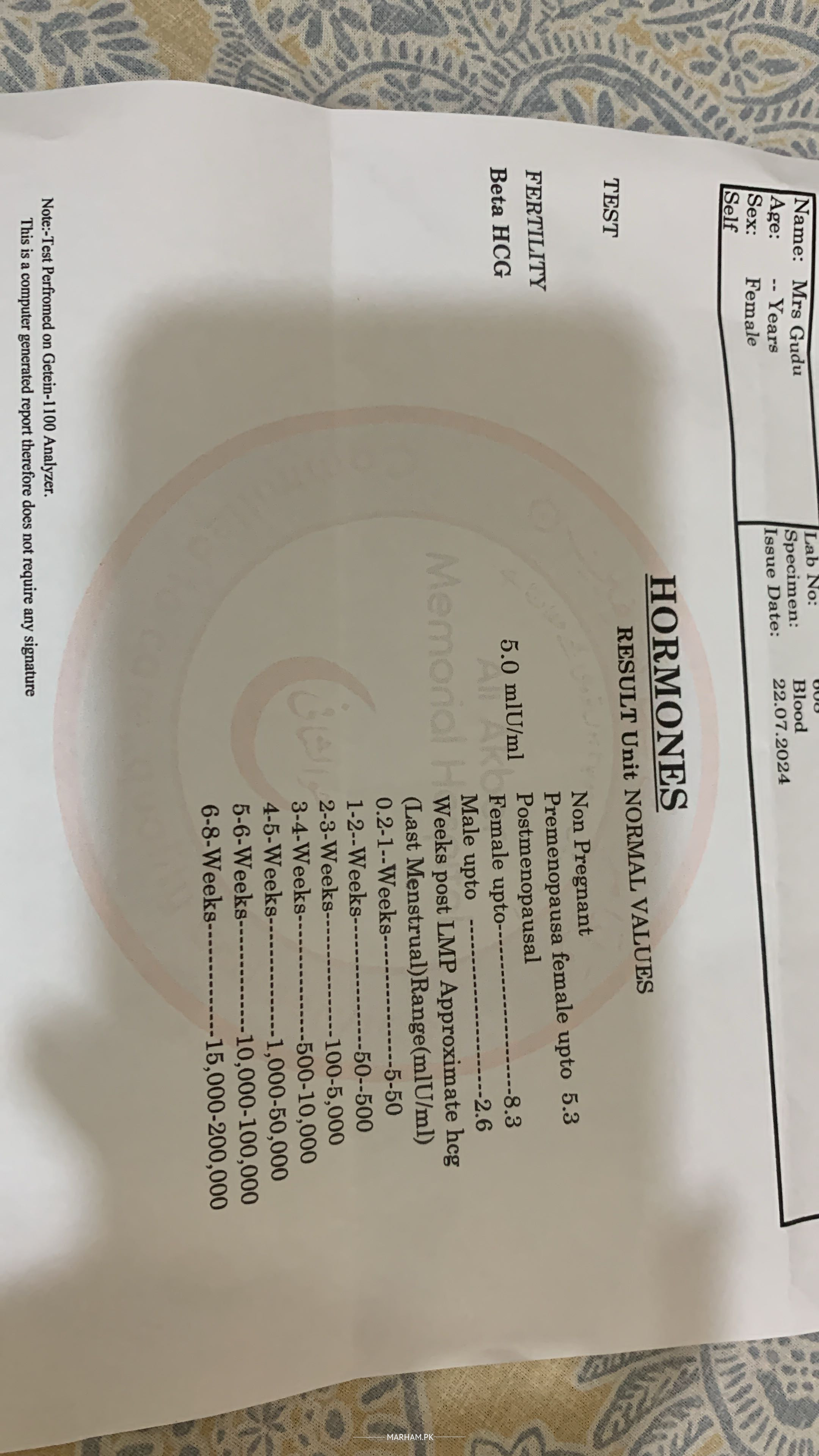 Lmp 22 june test done on 22 july .. please check it medicine taking tyroxine nd glucophage 500 mg