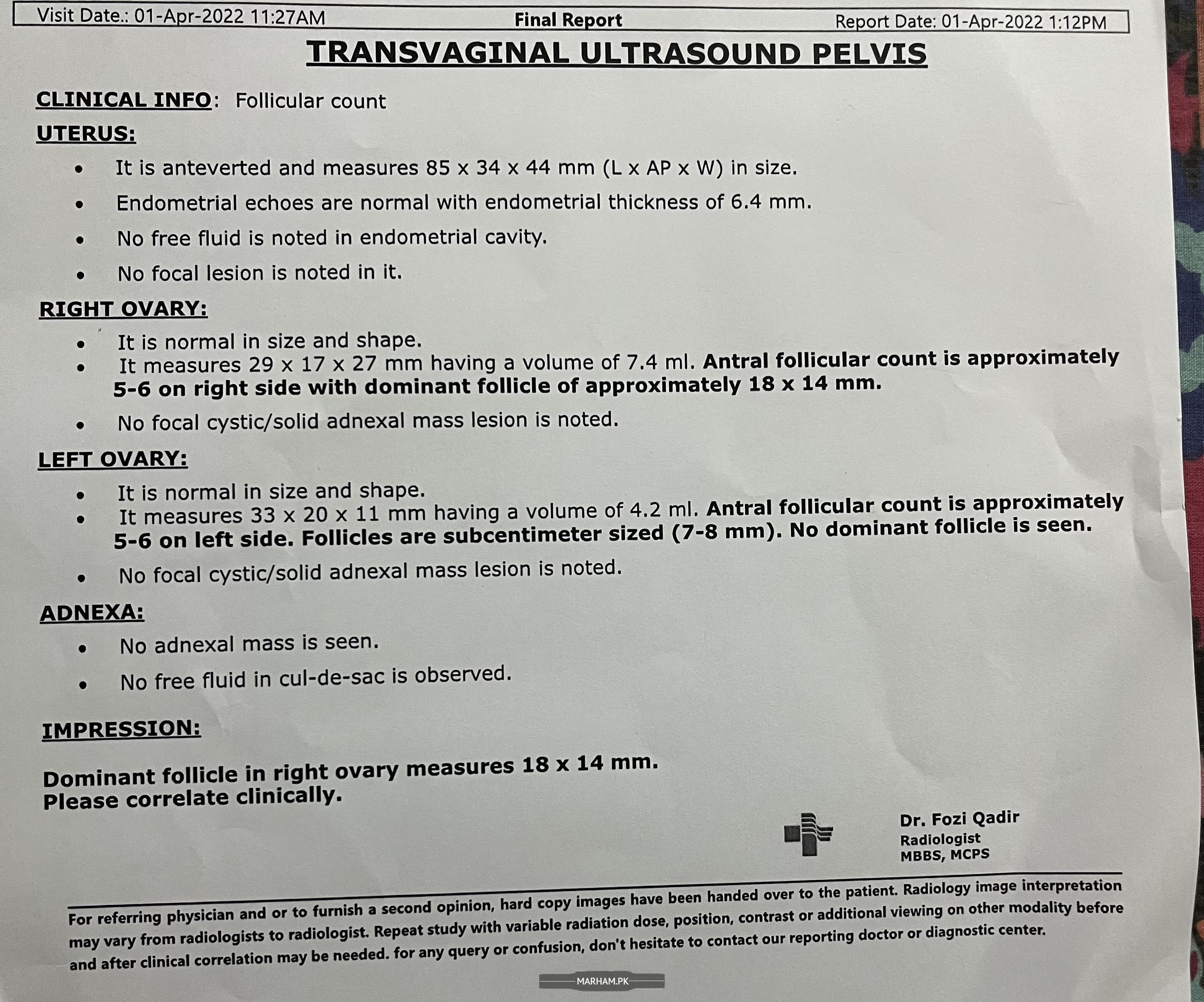 Salam . I am almost 32, got married in oct 2021 , didnt want to conceive initially,we usually used condoms ,no hormonal pills , but we have been trying to conceive from this November , so it has been 2 months trying ,I am panicking bcz of the age now next month I will be 32 and I have age matters a lot in getting pregnant . I wanted to ask should I start taking clomid or not yet? My cycle is usually 25,26 days ,but after trying my days got late for 3 days and I had a pelvic ultrasound on the 9-10th day of periods my dominant follicle was 10mm it didn’t increase .in march I had a tvs in on 10th day of cycle my dominent follicle was 18mm . All of the hormones are fine but only prolactin was 30 in last week of November , I started brotin,I didn’t propactintest 3days before and it’s 6.6 now .give me any suggestion please and does clomid has any side effects?
