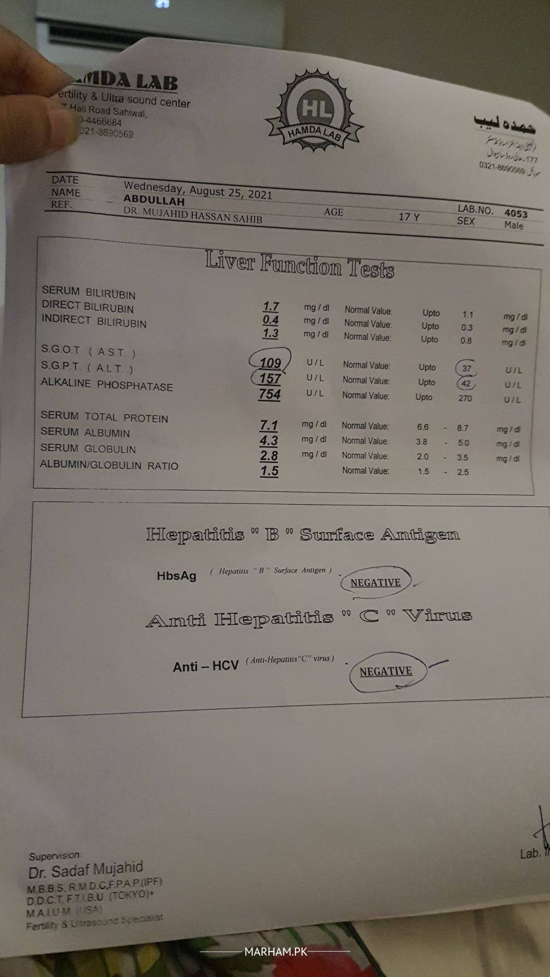 My son was suffering from very high temperature headache, bad throat and weakness. Doc asked to do these tests as he had Hepatitis A 2 years before. please check report and suggest that if there is anything dangerous. and hos much it will take to cure.