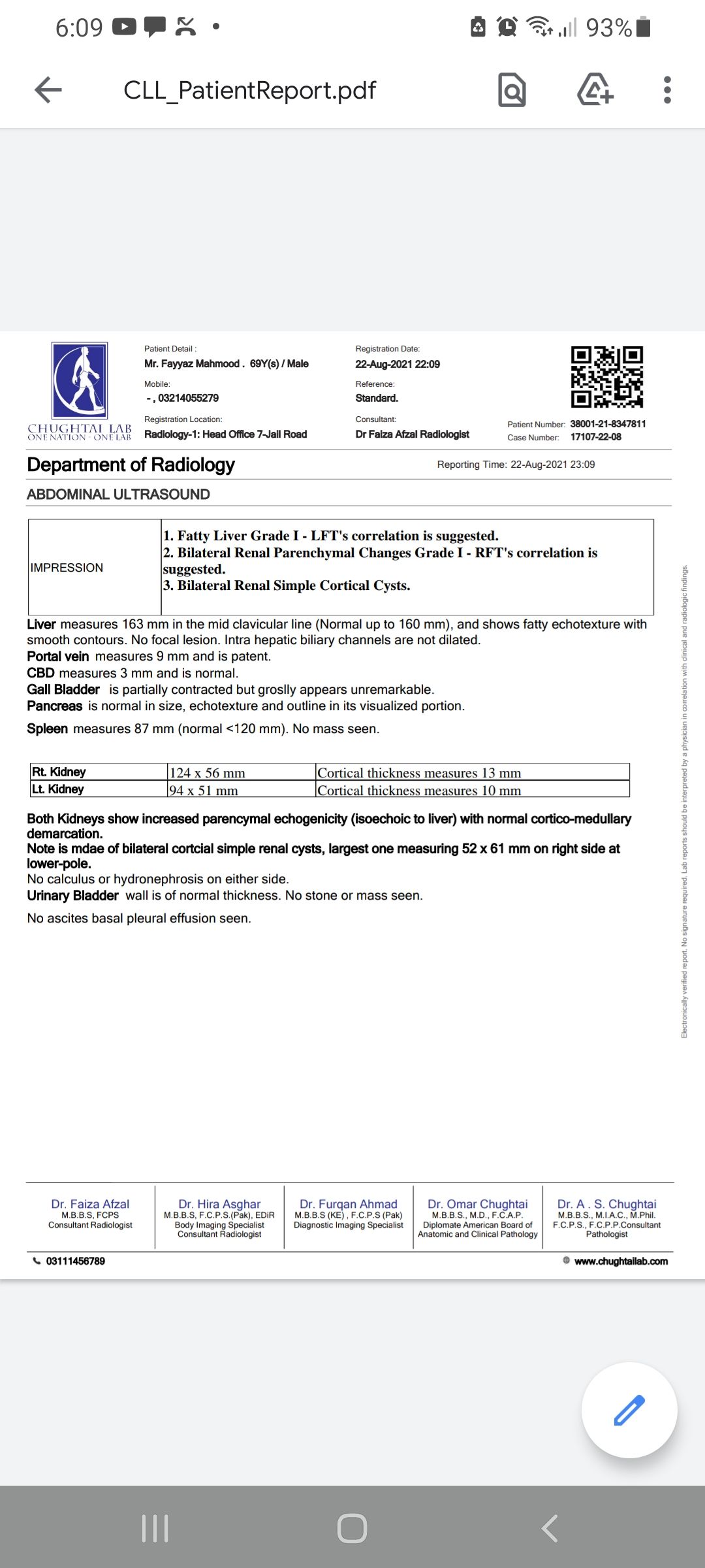 he is having pain in his backbone which is very severe, we took him to the hospital for ultrasound that it might be gallbladder issue but the report said that he is having fatty liver. kindly see the report and please tell if there is something to be worry about. thanks in advance