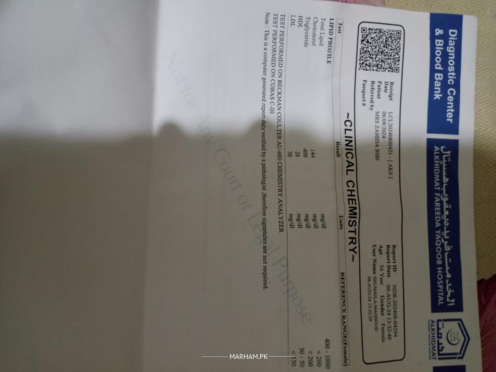 Asking For Self, Female 59, Shah Latif Town Karachi