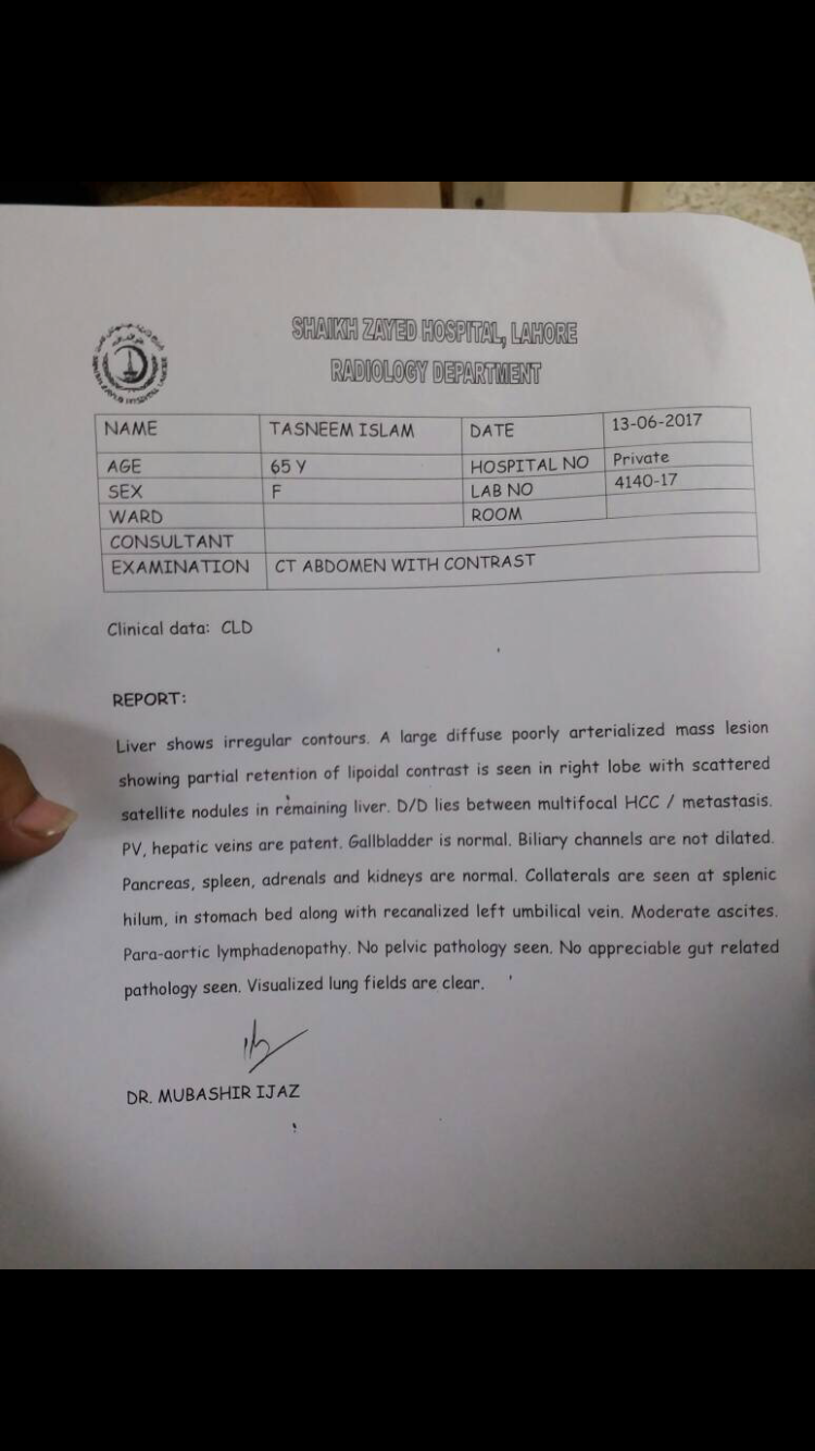 sir please guide me how we solve this problem and reason of this problems. One doctor tell us this is cancer bt not confirm us plz tell me this solution and reason??