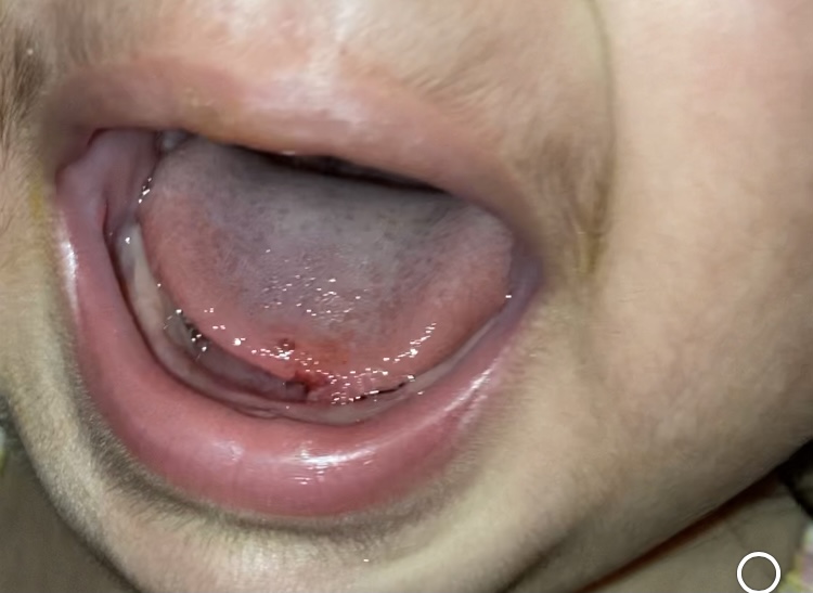 My 1 year old daughter slipped and hurt her chin on the coffee table due to which her tongue came in between her teeth and got cut at the tip. A small flap of her tongue is protruding outwards. Will it heal on its own or would require sutures?