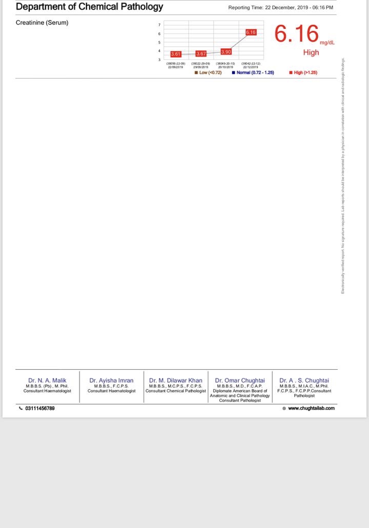My father is 60 years of age. A year earlier after some tests we found our he has minor kidney issues with creatinine levels at 3. We went to doctor and Alhumdullilah were satisfied with his medication overall. The levels stayed around the same place with minor fluctuations for one year. Recently somebody suggested us to visit another doctor and we did. He completely changed the medicines and my father took those for two months, recently he starting feeling more nauseous and then his ears bled two days earlier. He vomits once everyday since the last three days. His creatinine levels as of now are also 6.1, what should i do now? Consult the old doctor?