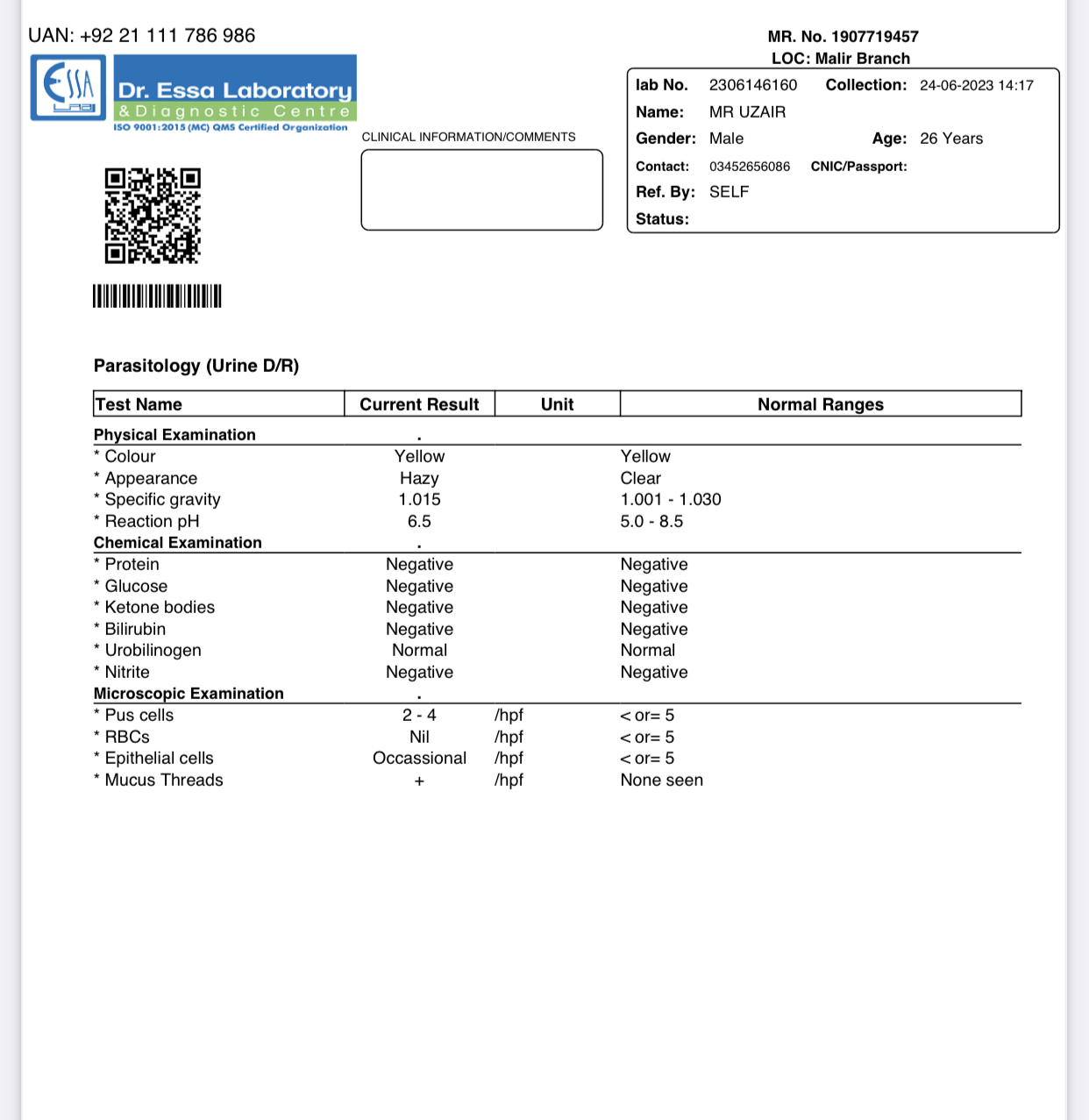 Any other symptoms with it like burning micturation, fever? Your urine dr is normal.