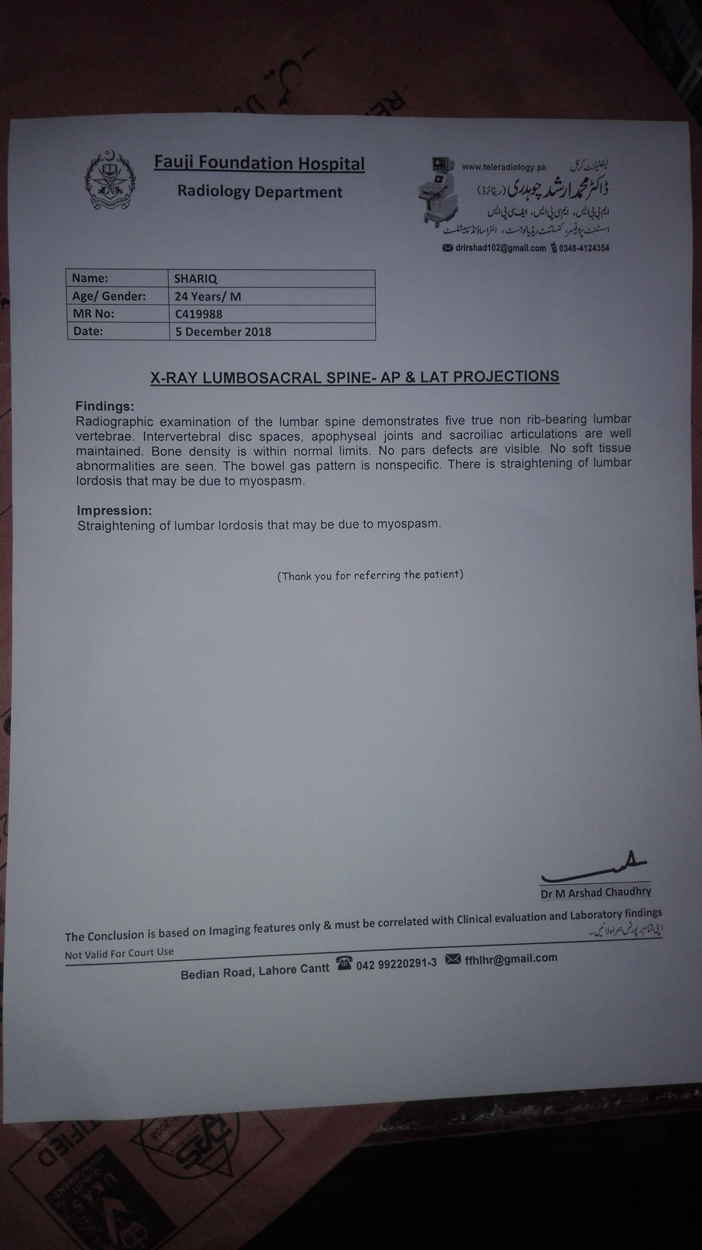 I was playing cricket when I hit a ball to the legside then my back muscles contract and til now I cant walk easily nd em taking bed rest. I took medicines for pain relief and some injections from doctors priscriptions but the pain is my mom advice me for the xray and here is the reports of that xray so kindly tel me whts the problem xray report I know little bit... and also tel me how I can reset this...