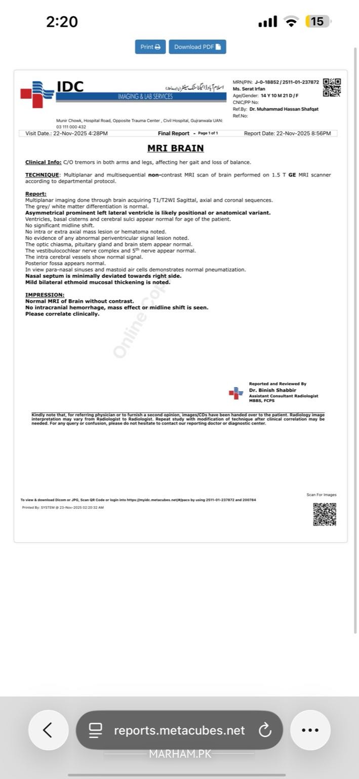 I will need to do a detailed neurological examination. Please make an appointment through Marham to see me