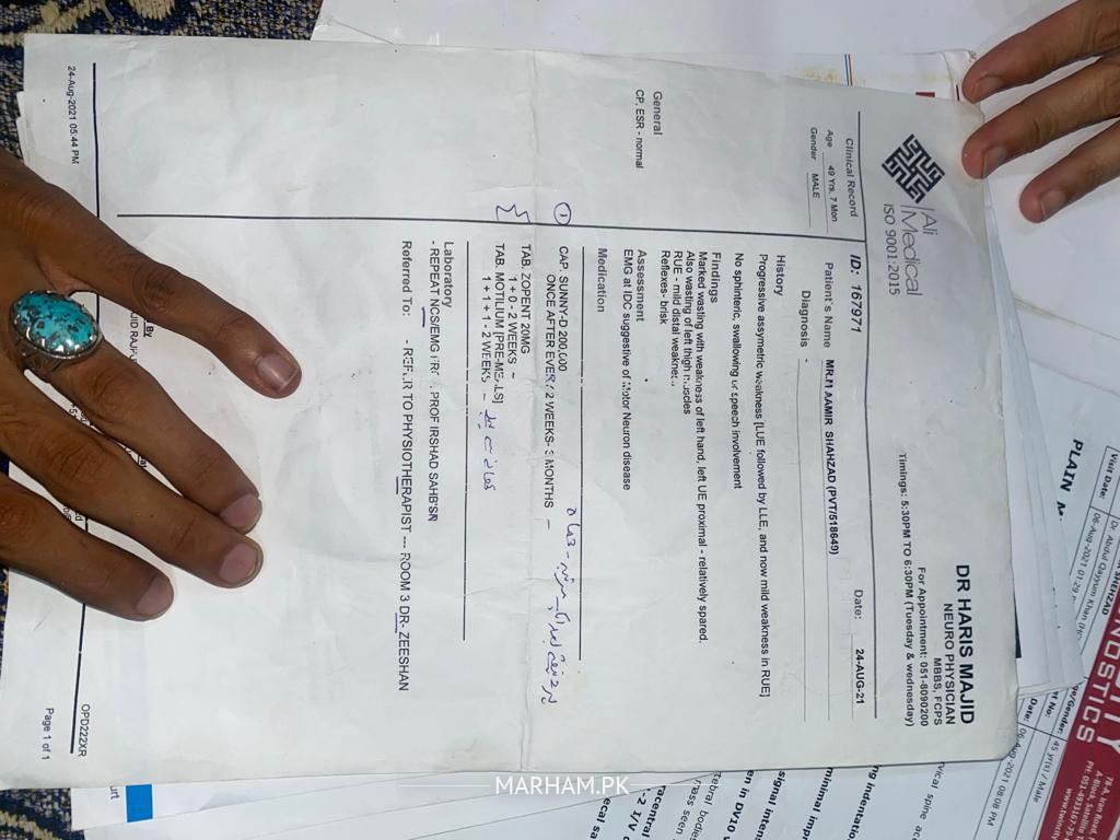 My father have MND and doctors said there is no cure so if Any treatment or Any Cure or Any Medication anywhere available please & NCS reportis Attached