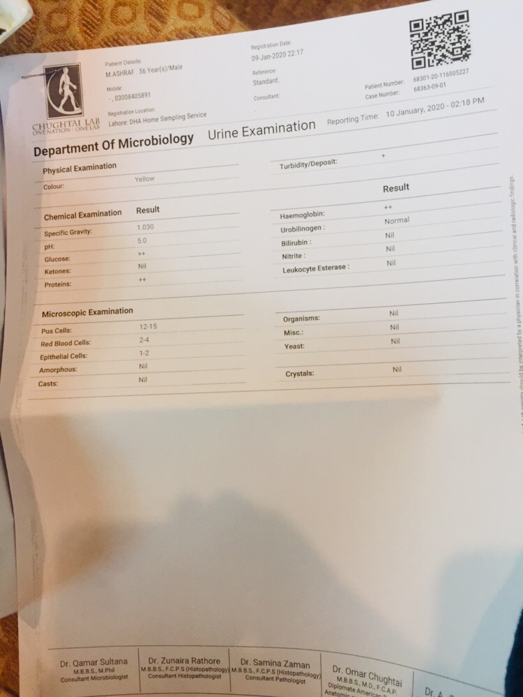 My father had stroke 1 year ago and his left side got effected but after some time he start walking but not like before also his left eye vision got effected. He is a patient of high blood pressure and Diabetes from last 15 years and on Insulin unit 40 From last one month he is losing control on bladder its the 5th time he is peeing on bed. For that we did some reports. Kindly check and tell if there is any problem. He is not taking any medicine for Brain only he is taking medicine for Hypertension and loprin and Insulin.
