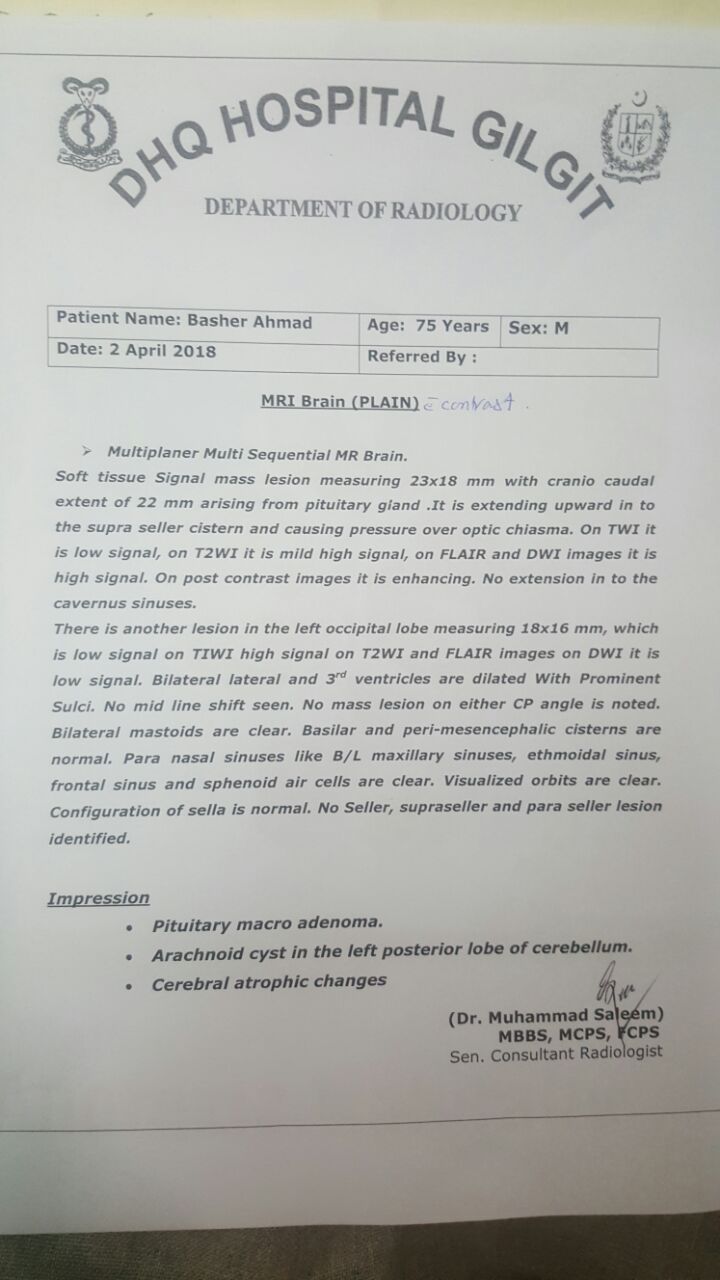 Diagnosed Pituitary v see neurologist or can be done by oral medication or should be done surgery. Plz advice as report is attached. Thank you.