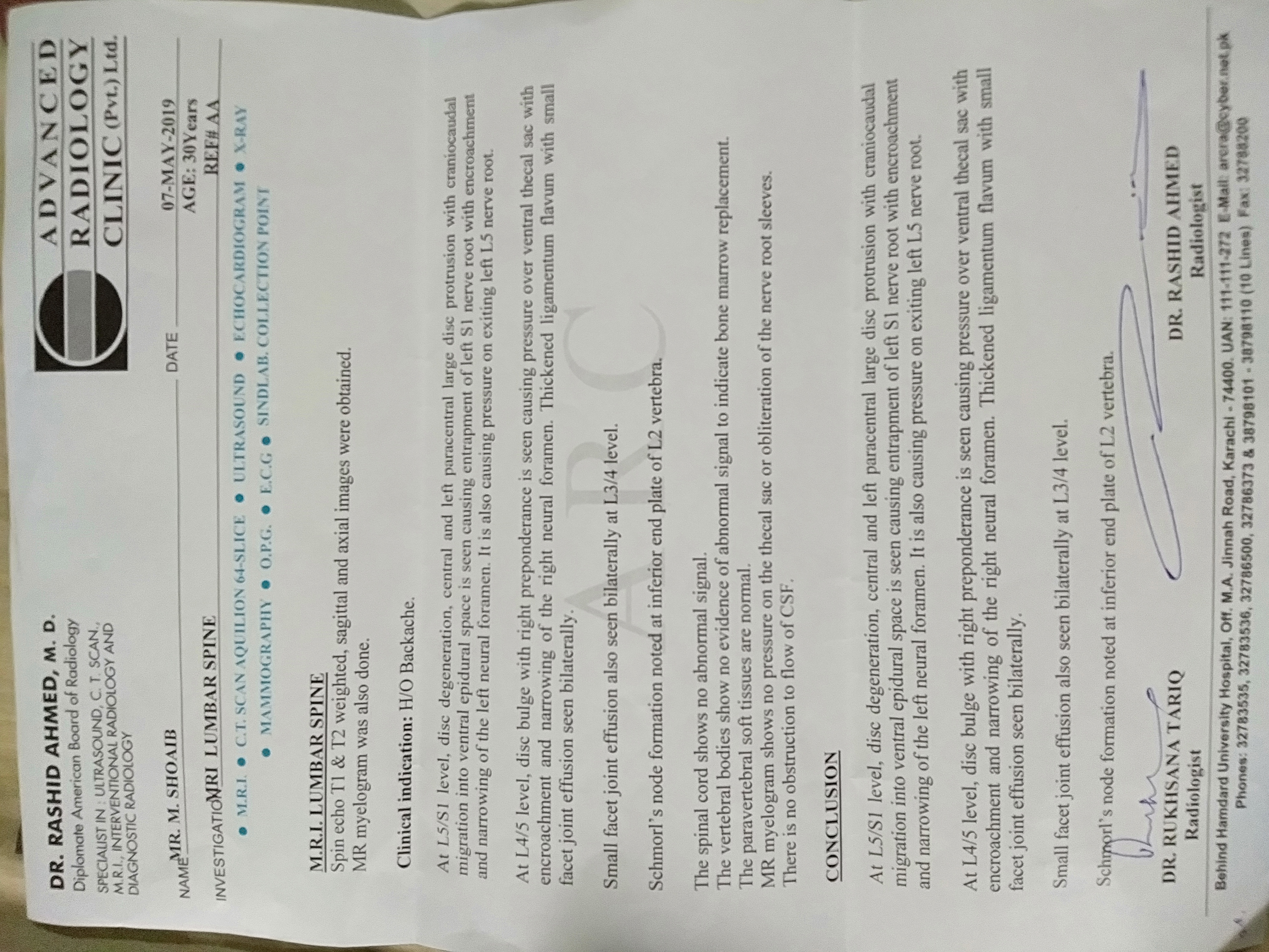 hi, Dr. Syed Atif Mahmood Kazmi sb I have also problem in L4 and L5 disc I already had surgery but I have still severe pain in my legs, I am in UAE and please help me to get rid of this pain.