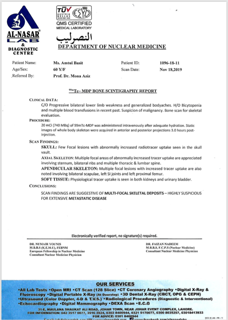 Cancer is not in bones ... i will send the bone marrow biopsy result . Also er pr result .. her-2 negative(1+) er and pr strong positive 90%of tumor cells