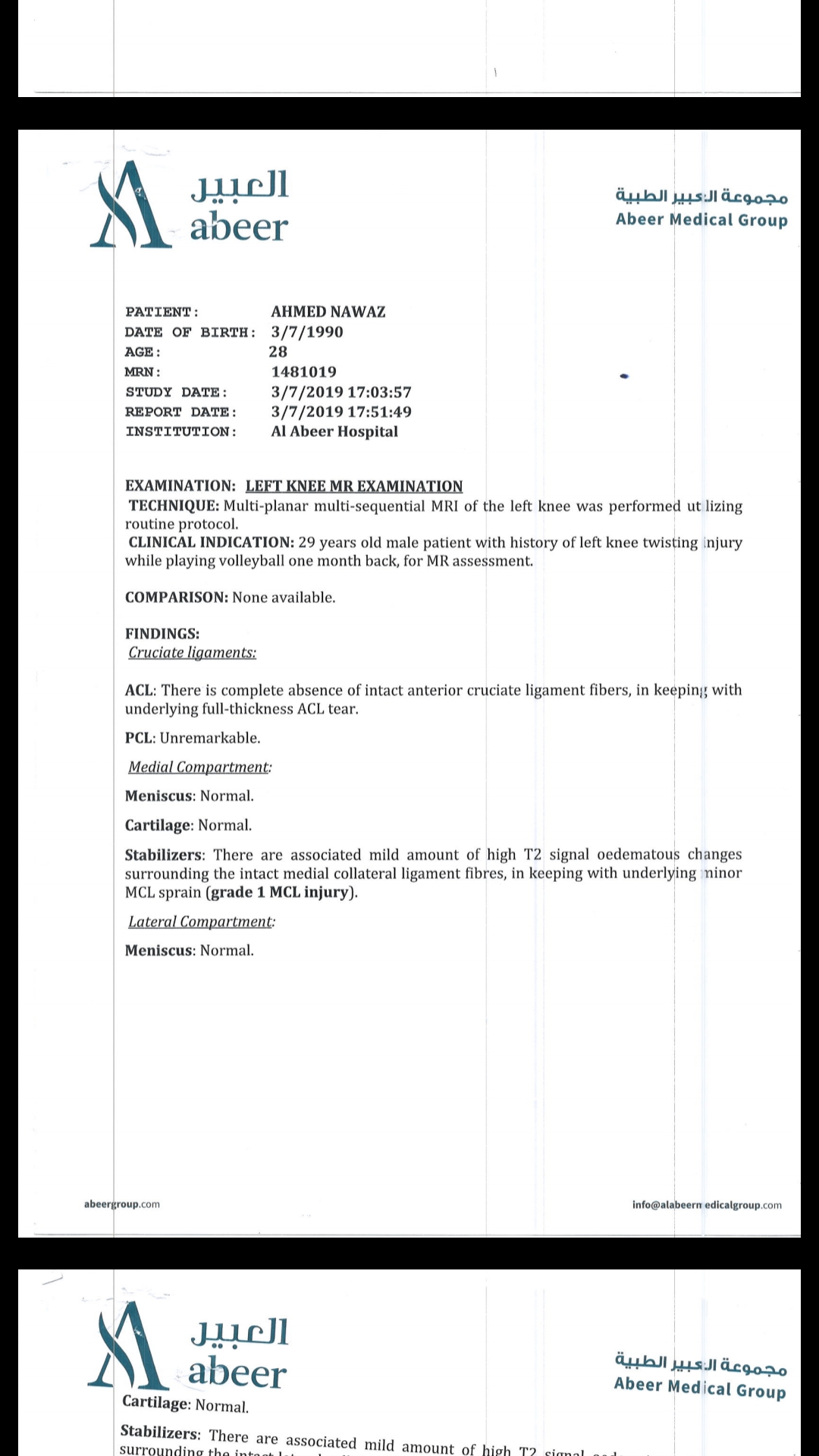 24 February i was playing Volley Ball during match i have got ACL injury. I am working in KSA now just got medical leave for surgery i want to get surgery at 23 of September please guide me i have all my medical history about it....