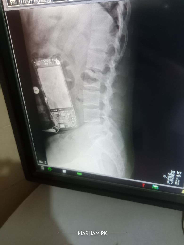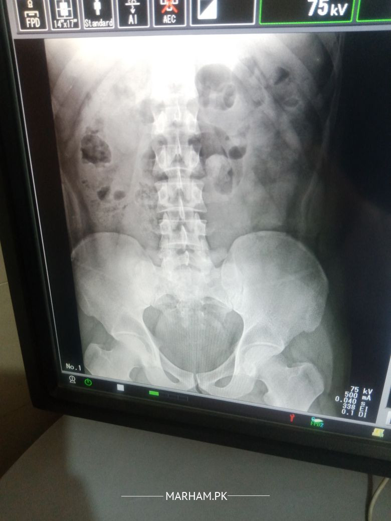 Looks straightening of spine in lateral view probably due to muscle spasm.