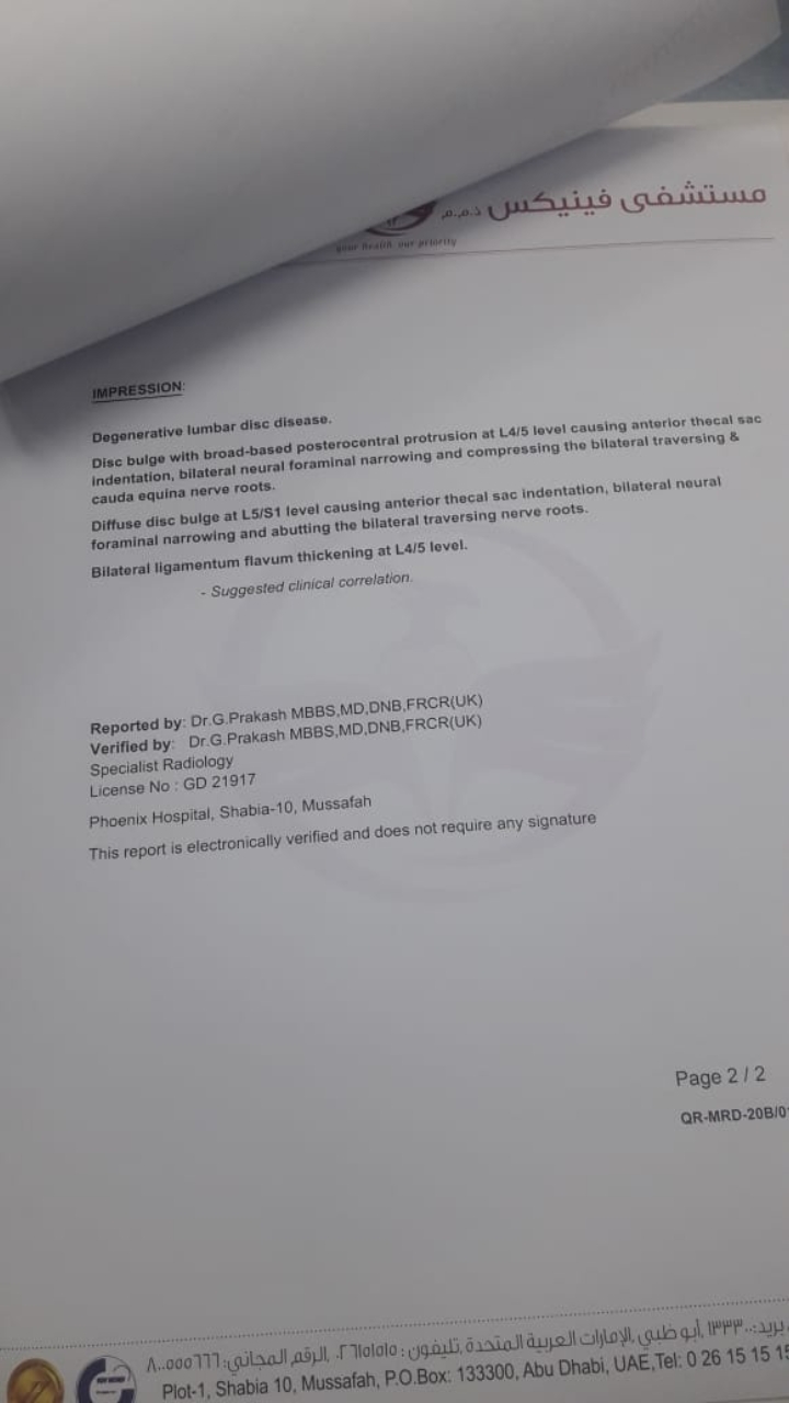 AOA, if ther is any numbness in your feet or legs you need to be re examined by Orthopaedic or Neurosurgeon to decide for operation. Thanks