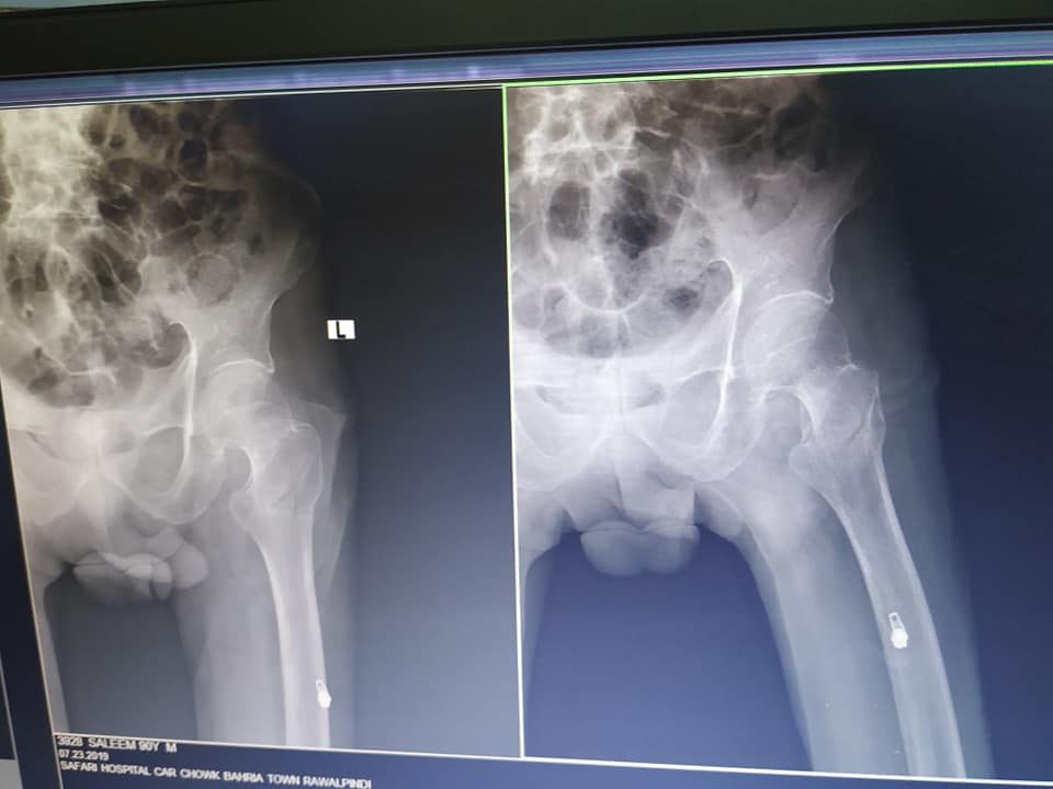 my grand father slipped on floor yesterday. kindly have a look on x ray i need dr opinion is this fracture is curable without surgery as his age 90 and suffering from weakness blood pressure low and no eating well please dr suggest best possible treatment