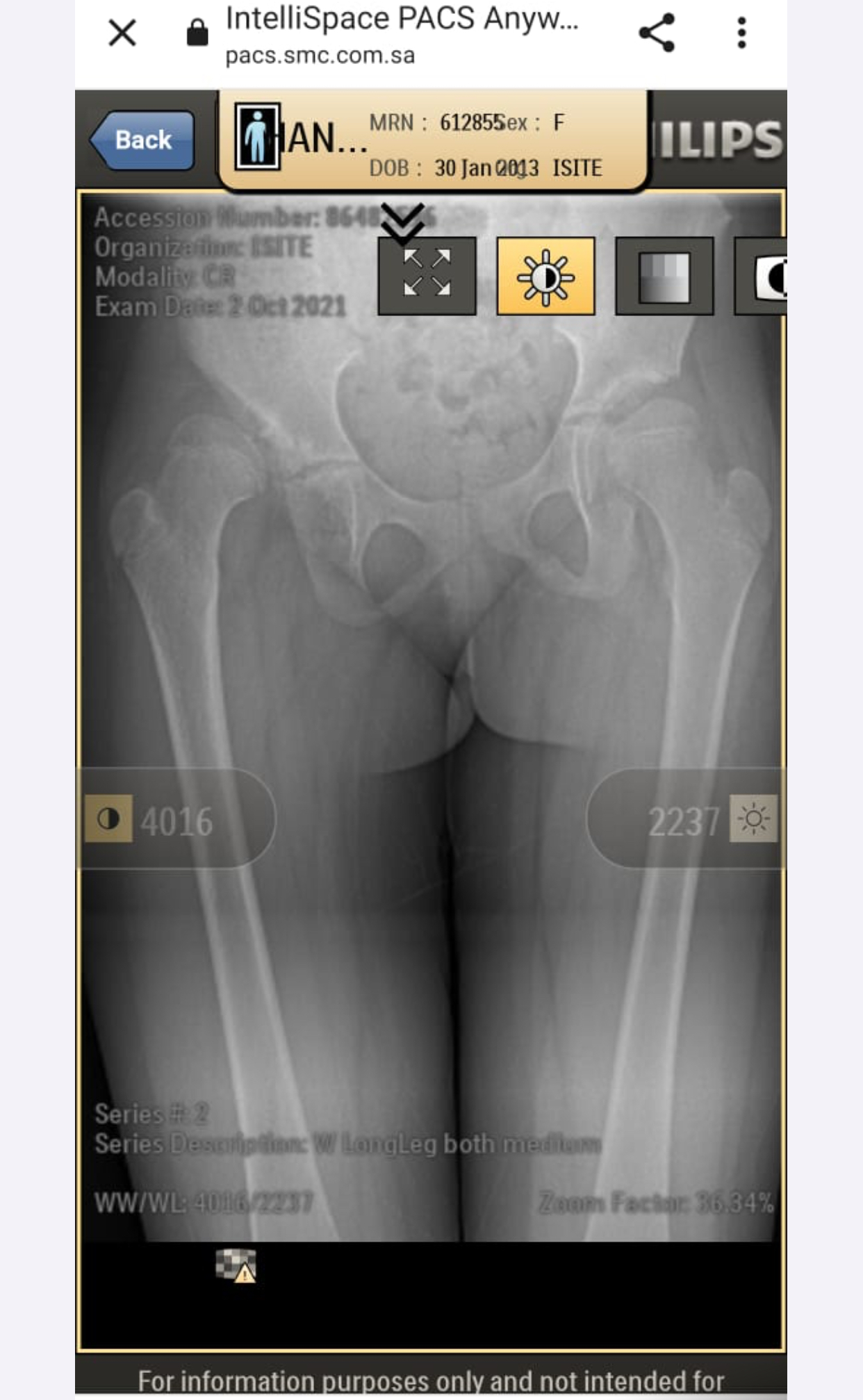 she definitely need surgery to keep the head at level of socket. you should consult DR. CHIRAGH at GHURKI TRUST HOSPITAL, LAHORE. He is very experienced and expert for this disease.