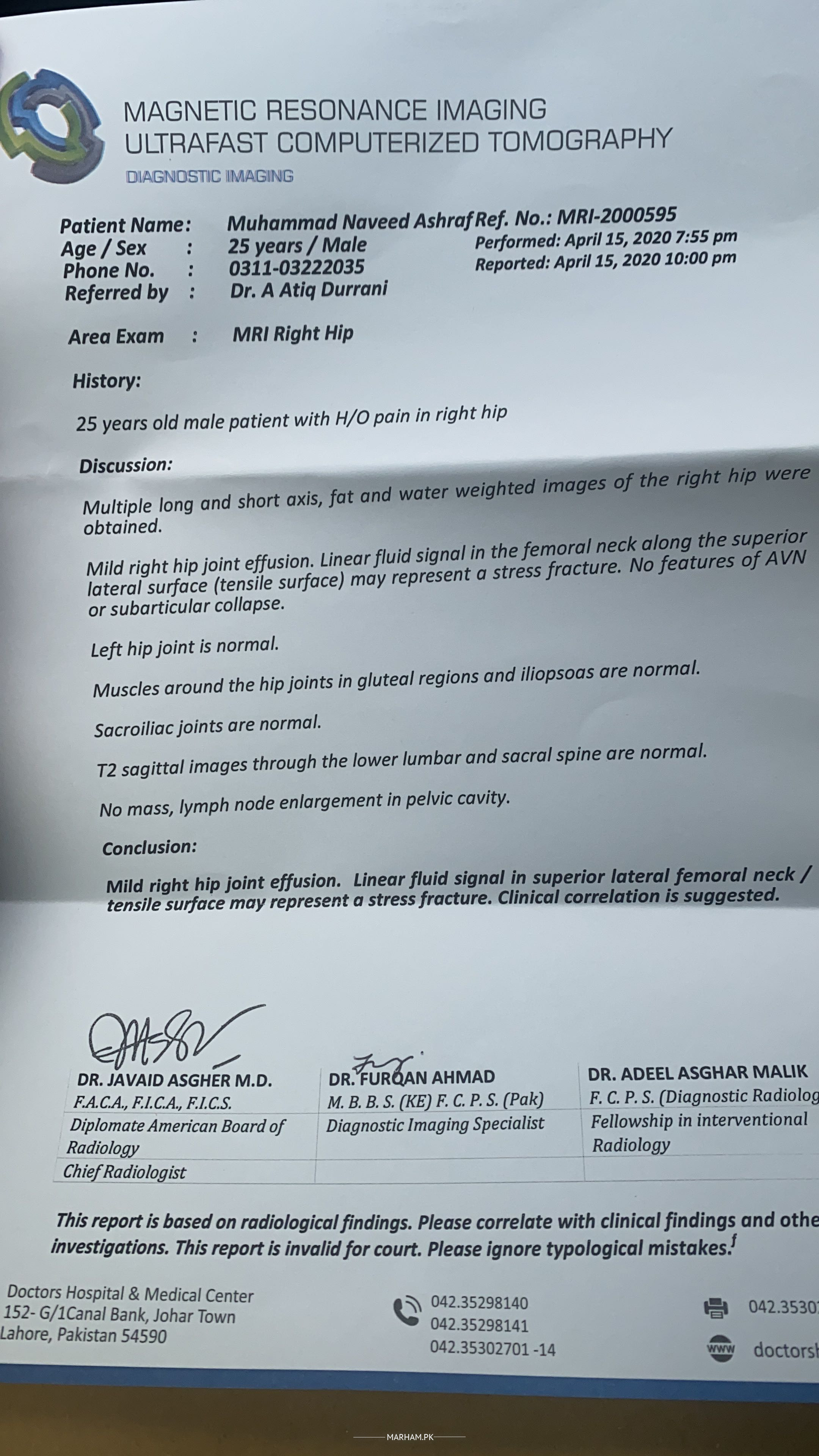 Sir i made my xray done and the doctor said that there is no fracture, us k bad i went to another doctor and he suggested me MRI, and yes i used to smoke but left 4 months ago, still smoke shesha sometimes but no history of trauma or steriods