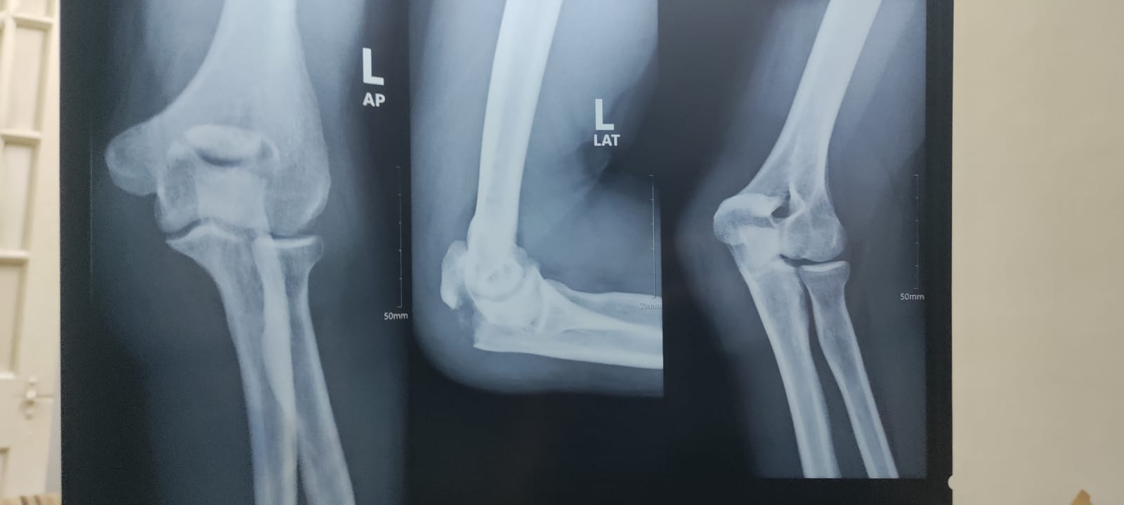 I had an accident from bike, i landed on my left elbow that lead to damage something in my elbow, can u check my x-ray and let me know whether it can heal by just using sling, or is operation needed