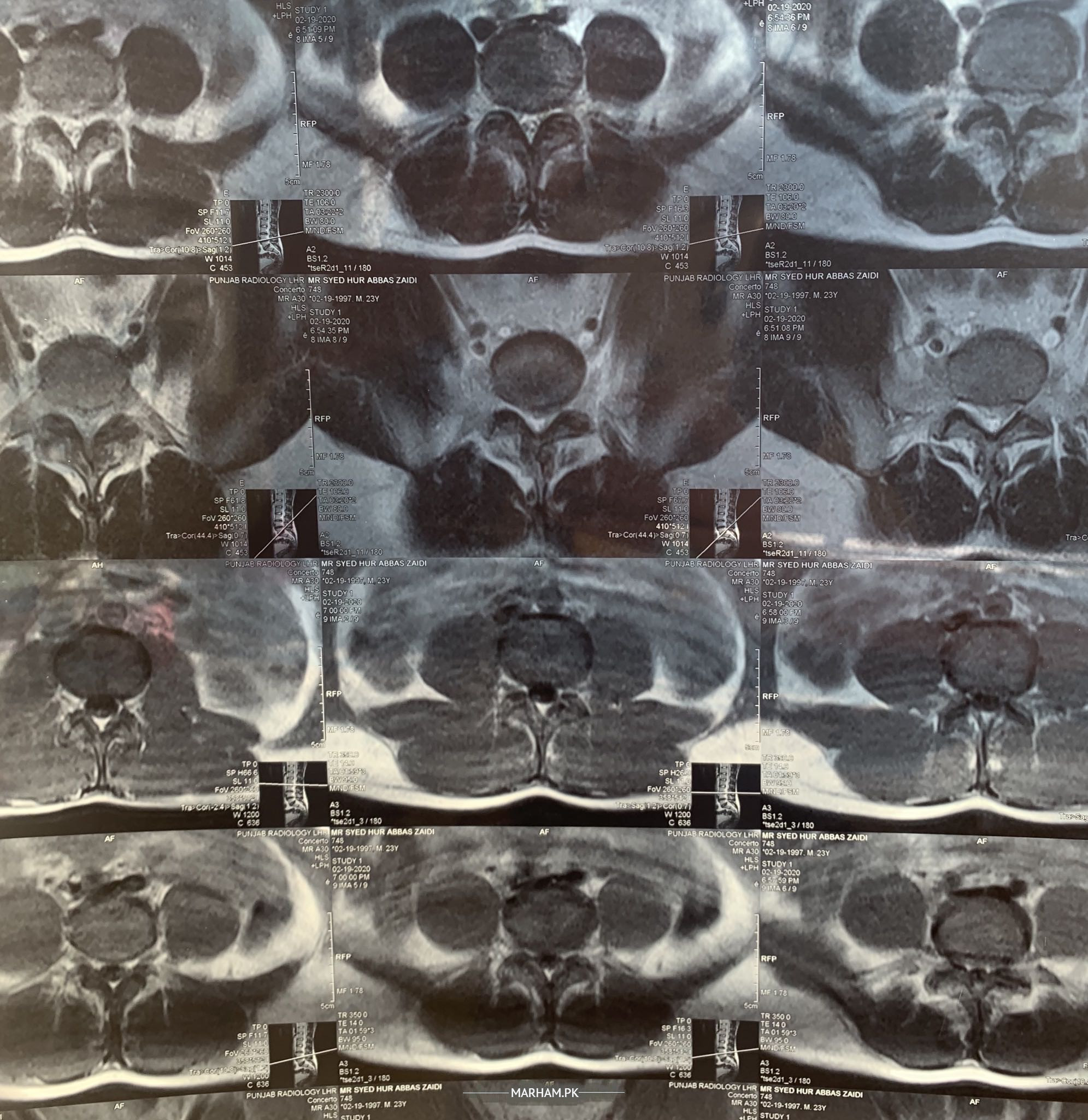 Actually when i was free after finishing my 10th grade I started gym and while doing gym i got a little bit lower back issue from there,but I ignored and back to normal but time to time that pain becomes so hard i even also don’t care to much about it and feel relax,i also did a heavy weight lifting job loading and unloading trucks but now im in a serious condition i cant endure that pain. I visited neurosurgeon physiotherapist aswell but still im not out of my pain im attaching my MRI REPORT in file kindly tell me any solution for it really appreciate thanks