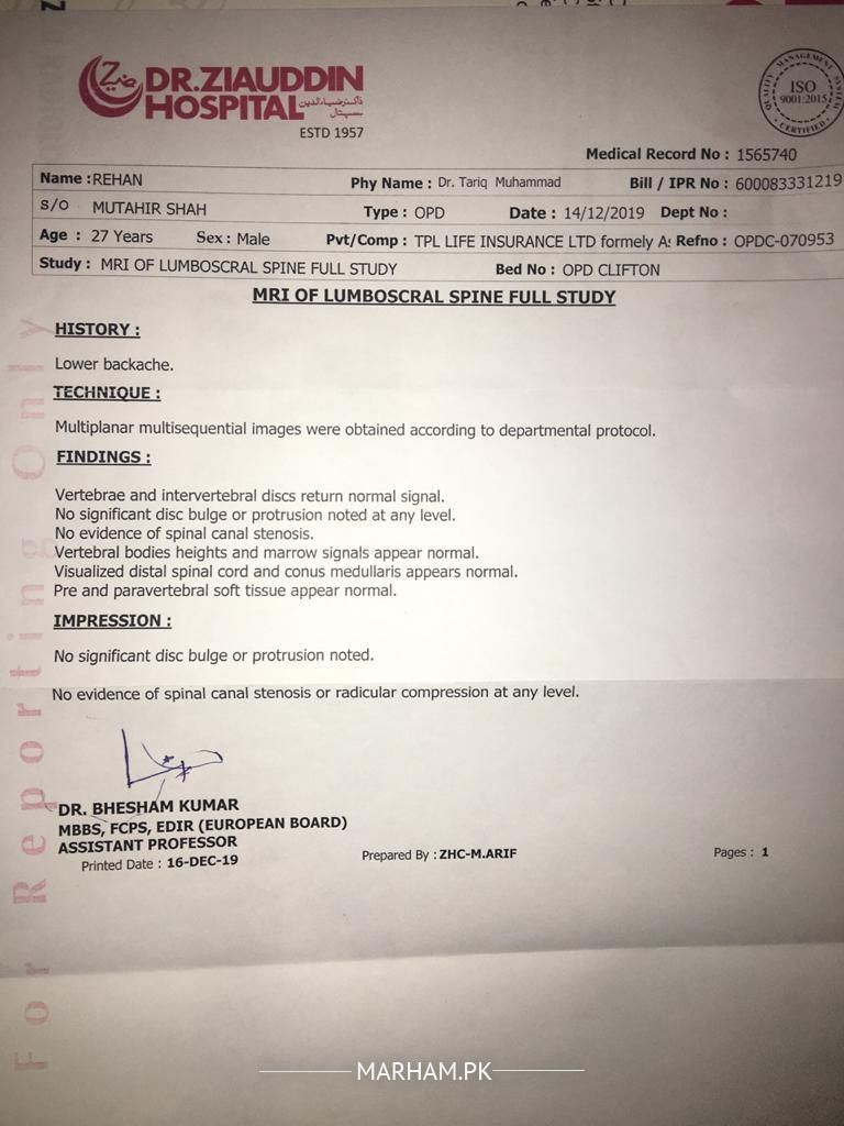 Hi, your MRI is normal reported. However there could be plenty of reasons for you to get backache. You need to be examined by orthopaedic surgeon. I practice in Islamabad and you are welcome in clinic. Thanks
