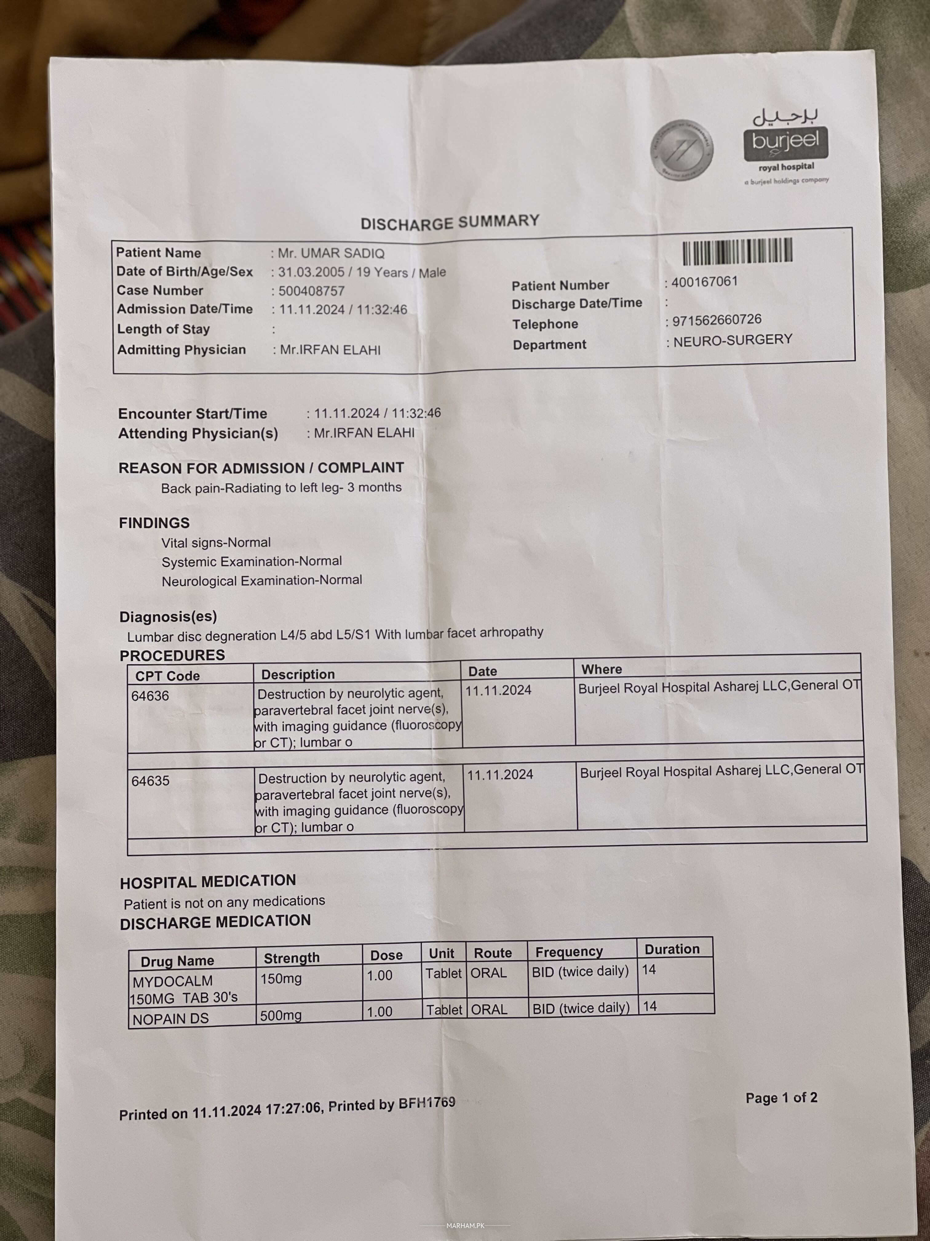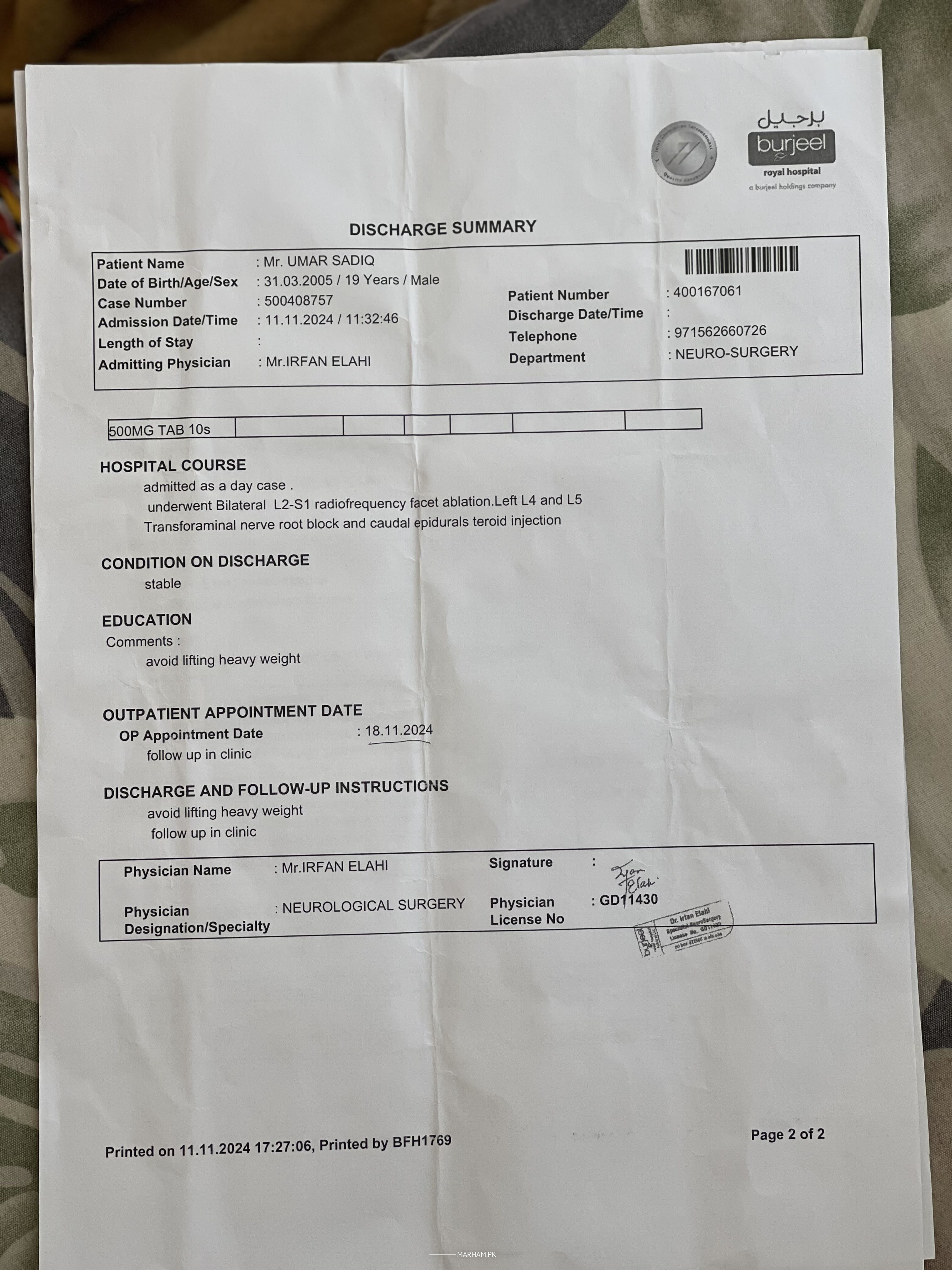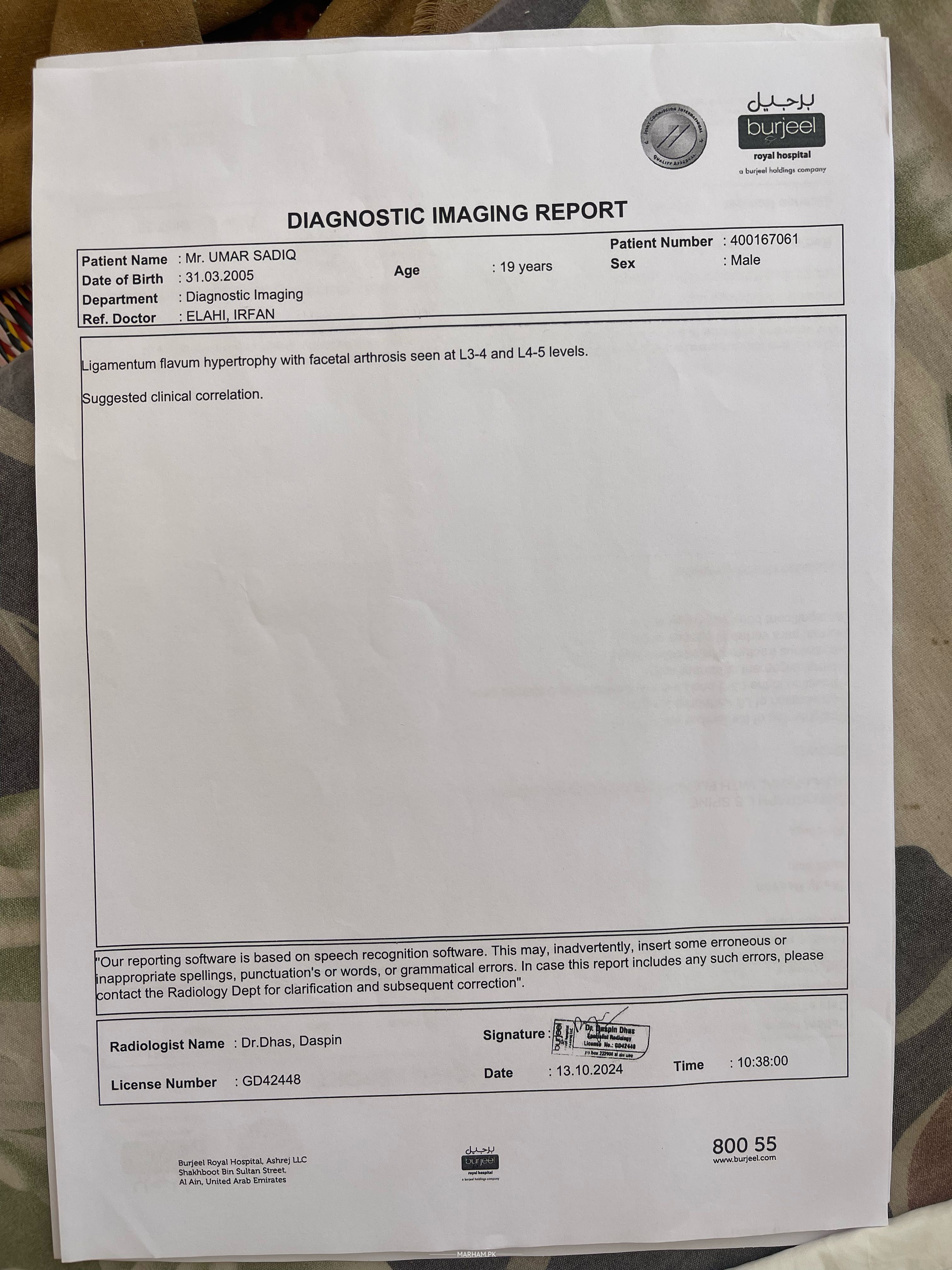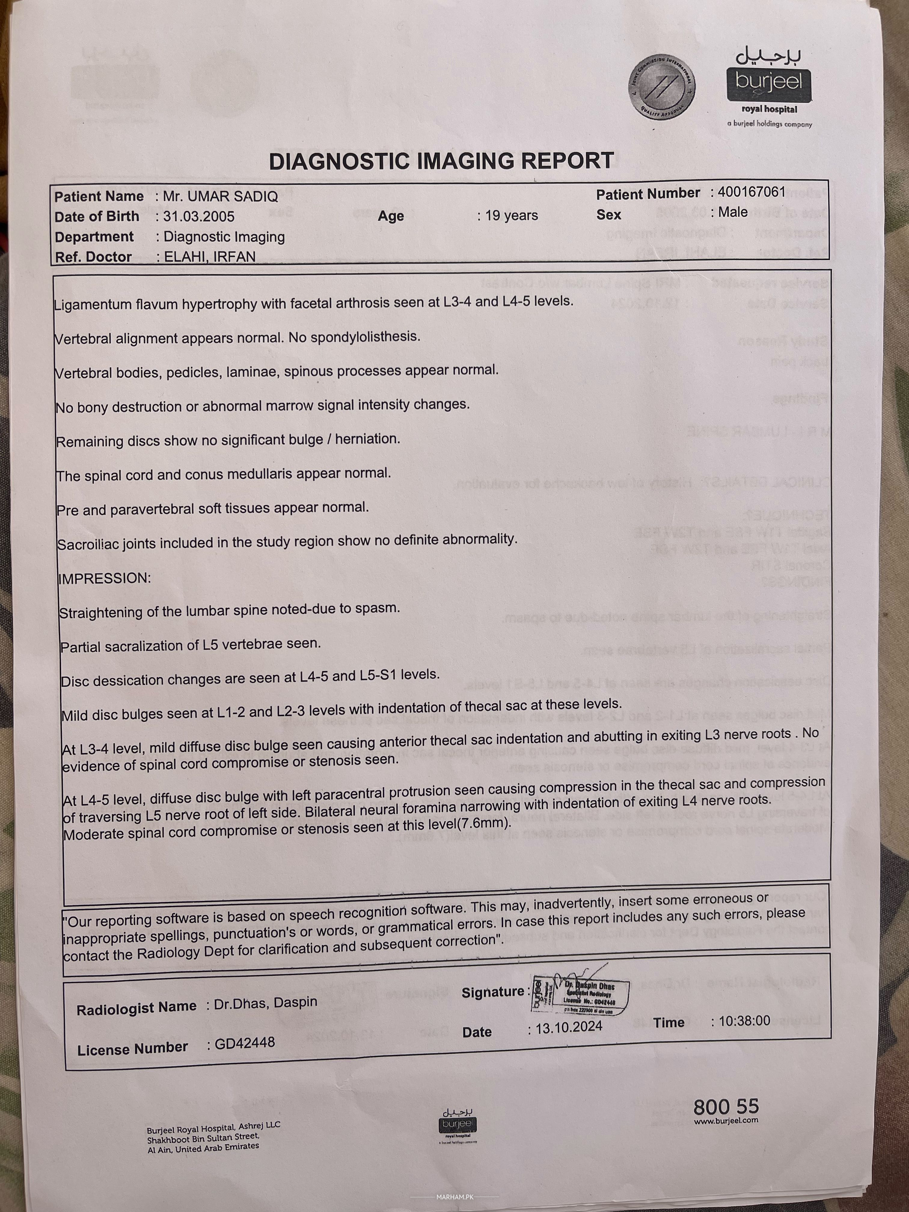 My name is umar sadiq basically i am from Pakistan from last two years i am leaving in dubai i am working in company oneday i was working “I lifted some weight, which caused pain in my back, and that pain goes straight from the back to the hip. I went to the doctor, i did CT sacn and some X rays and he said you have dic problem (sciatica) and he prescribed me one injection and I did it but still i feel the same pain that injection was useless so now i am coming to Pakistan i feel depressed because of this pain and i am the only member to support my family and I can’t do it with this please guide me
