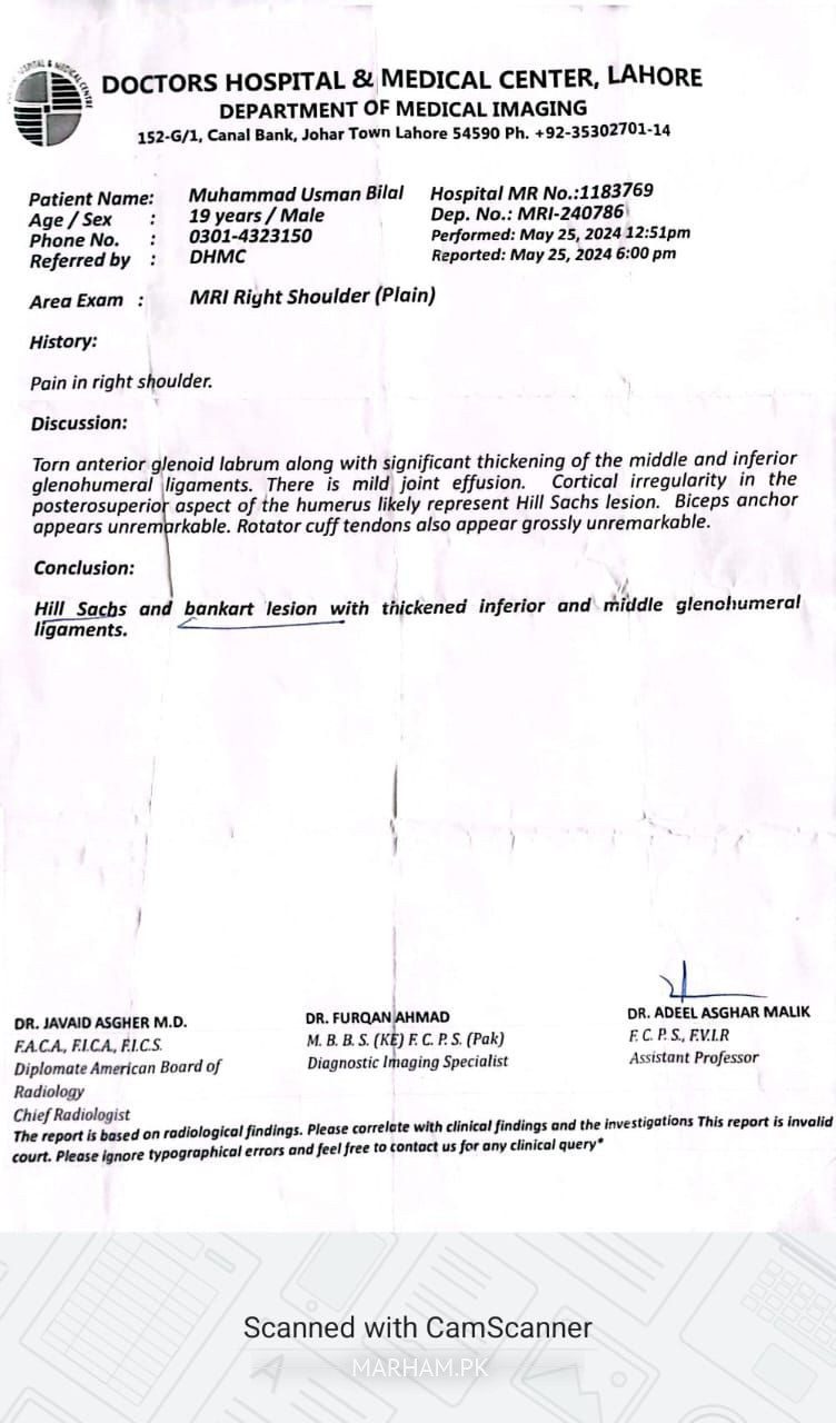 I'm male aged 20. Nov 2022 mein first time shoulder dislocate Hua Tha bike accident mein. Uske bad mein recover hogua Tha. Phir may 2024 mein dubara dislocation Hua Tha sudden jerky movement se. Ab right now, mera shoulder dubara dislocate nahi Hua but mein jab sports, gym, ya heavy activity krta hun to weakness feel hoti ha. Pain nahi hoti zyada lekin discomfort aur ajeeb stretching feel hoti ha. Aur clicking aur popping boht ha joint mein............ Ab mein ne 2 mris krwae thay. Kindly unko dekh kr bata sakte Han ke mere liye kya treatment best ha? Kuch doctors physiotherapy ka kehte Han aur kuch arthroscopic surgery recommend krte Han. Kindly 2no reports mein improvement ka batayen agar ha koi.