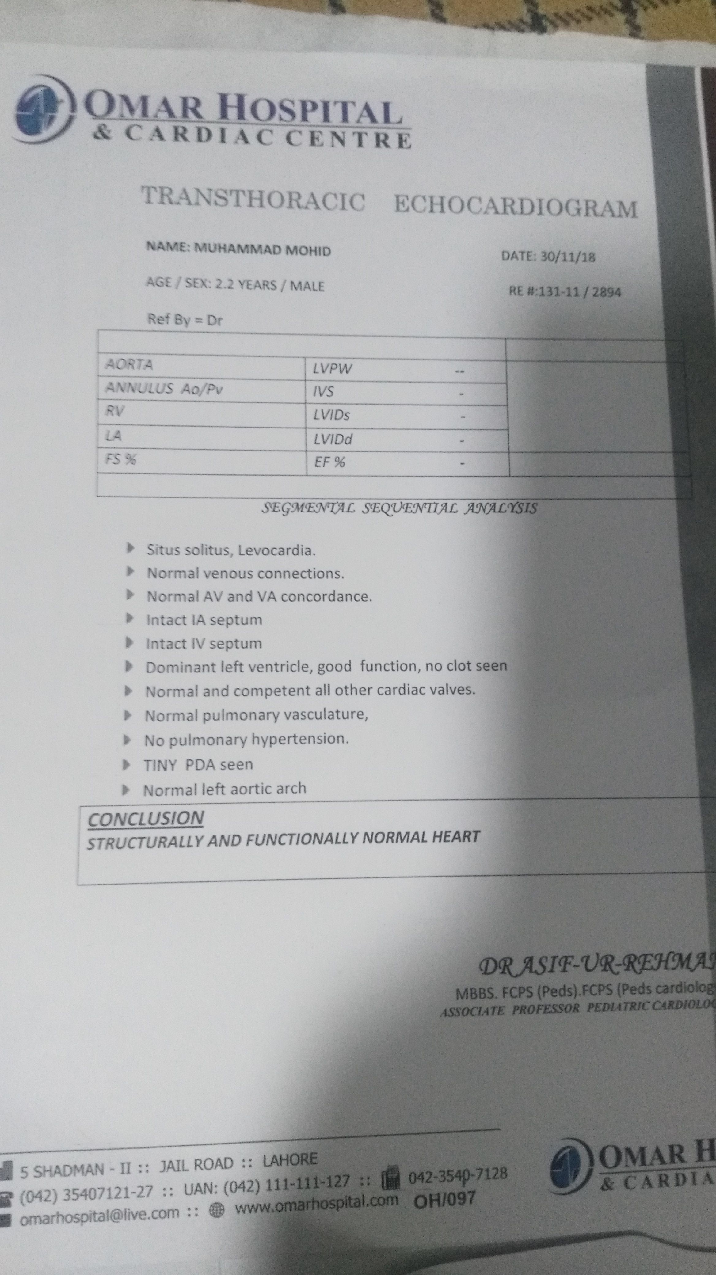 There is already death of 2 daughters, one was 2 year old and one was 5 month old, so for our satisfaction we done the echo of 2 year son, and report is here, doctor said no need of medicine, it is normal, Her 5 month sister was died a month ago and she has the problem if pda and severe mitral vavle regurgitation. Please tell us either his report of echo is oka?