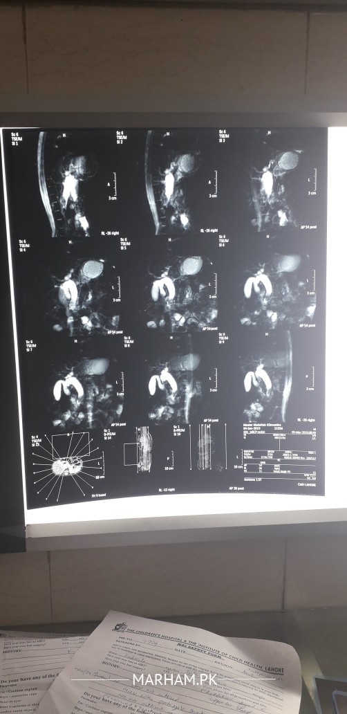 a doubtful are of contrast accumulation parallel to gall bladder may be congenital gall bladder anomaly (bifid or duplicated). these all are my impression from MRCP but need to be confirmed by paediatric radiologist.