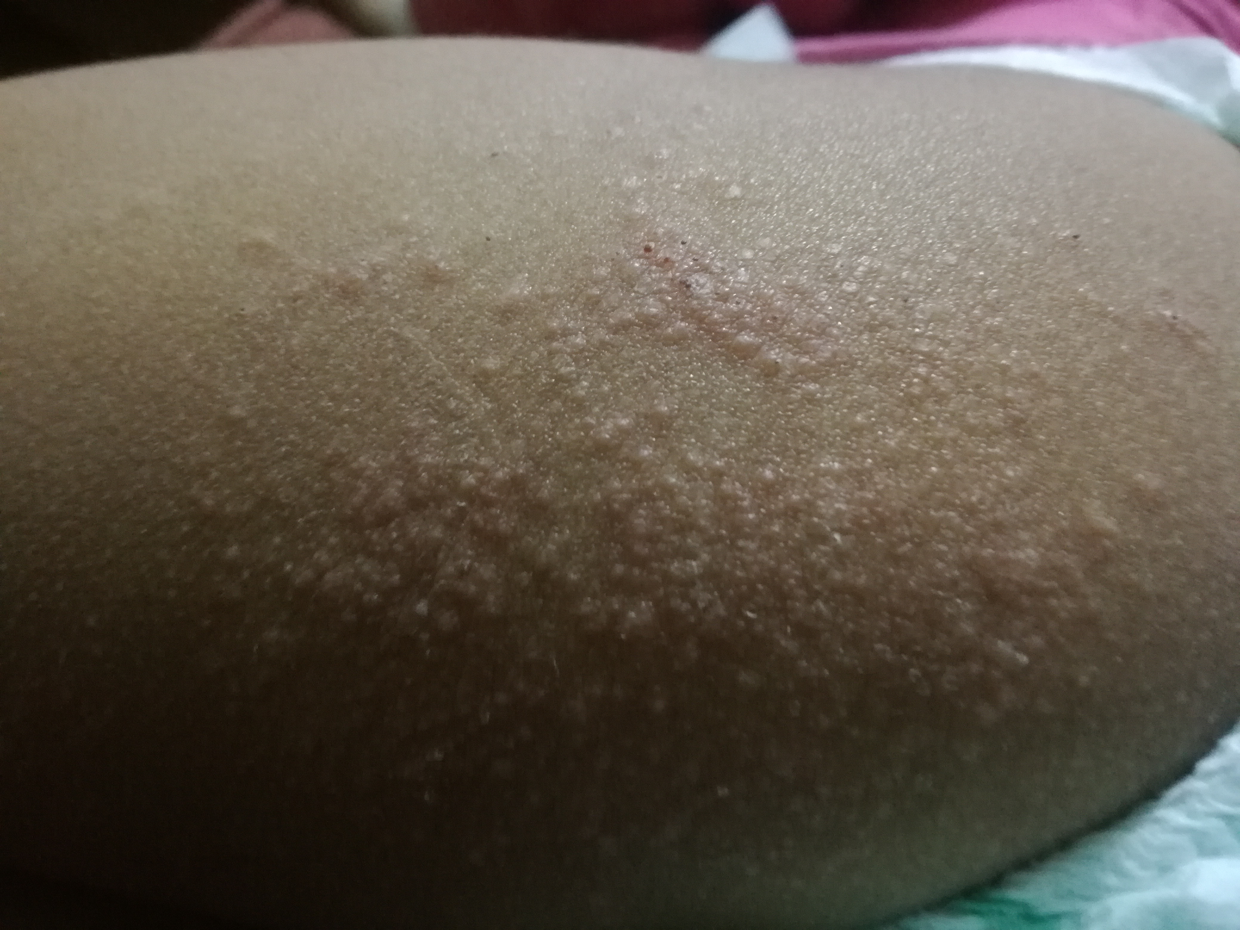 My child 2.5 years old, is having such type of rashes / pimples on her thigh near her diaper, she has so much itching in them what is it?