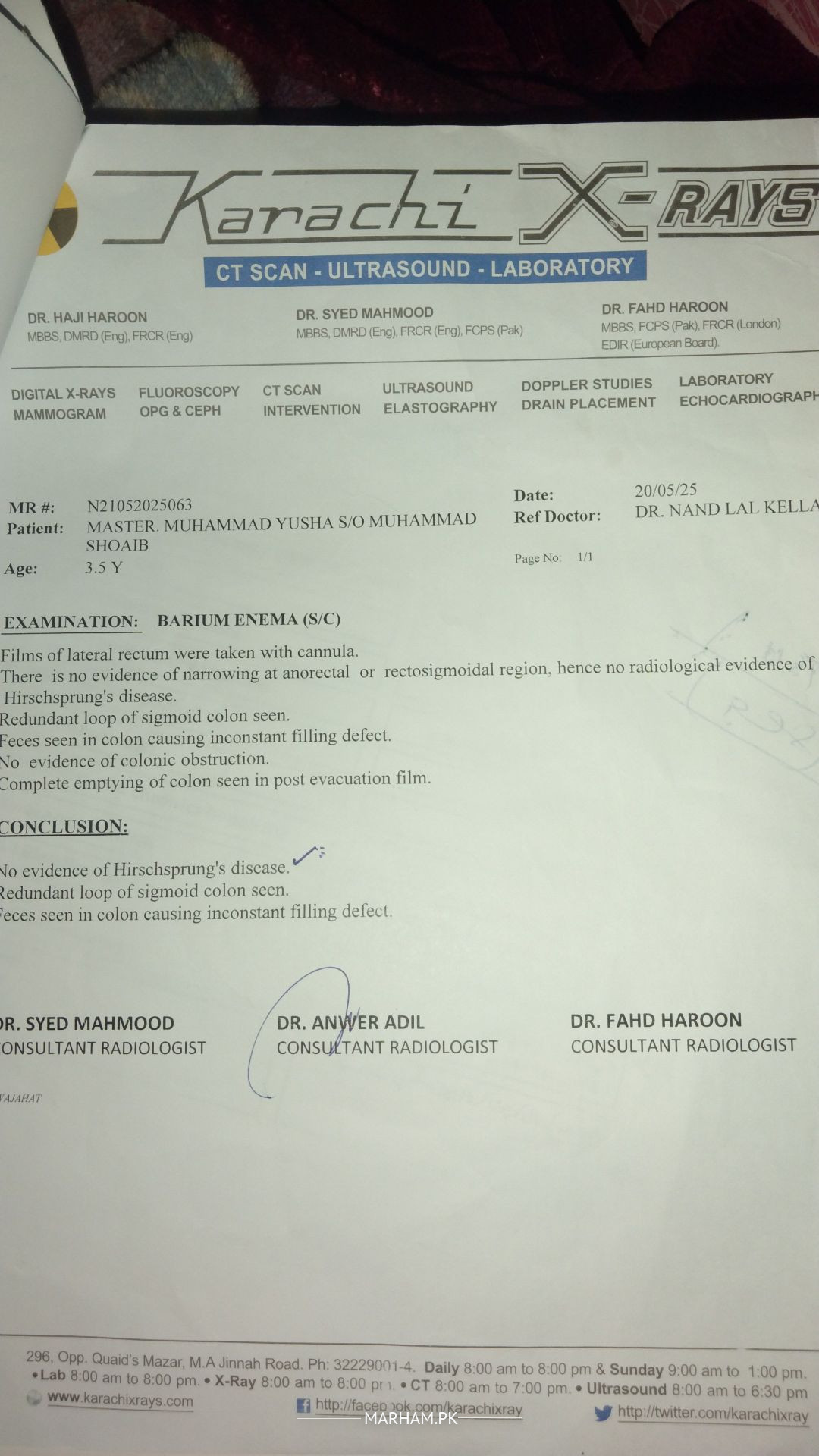 this report is normal. it does not show any evidence of Hirschprungs disease .