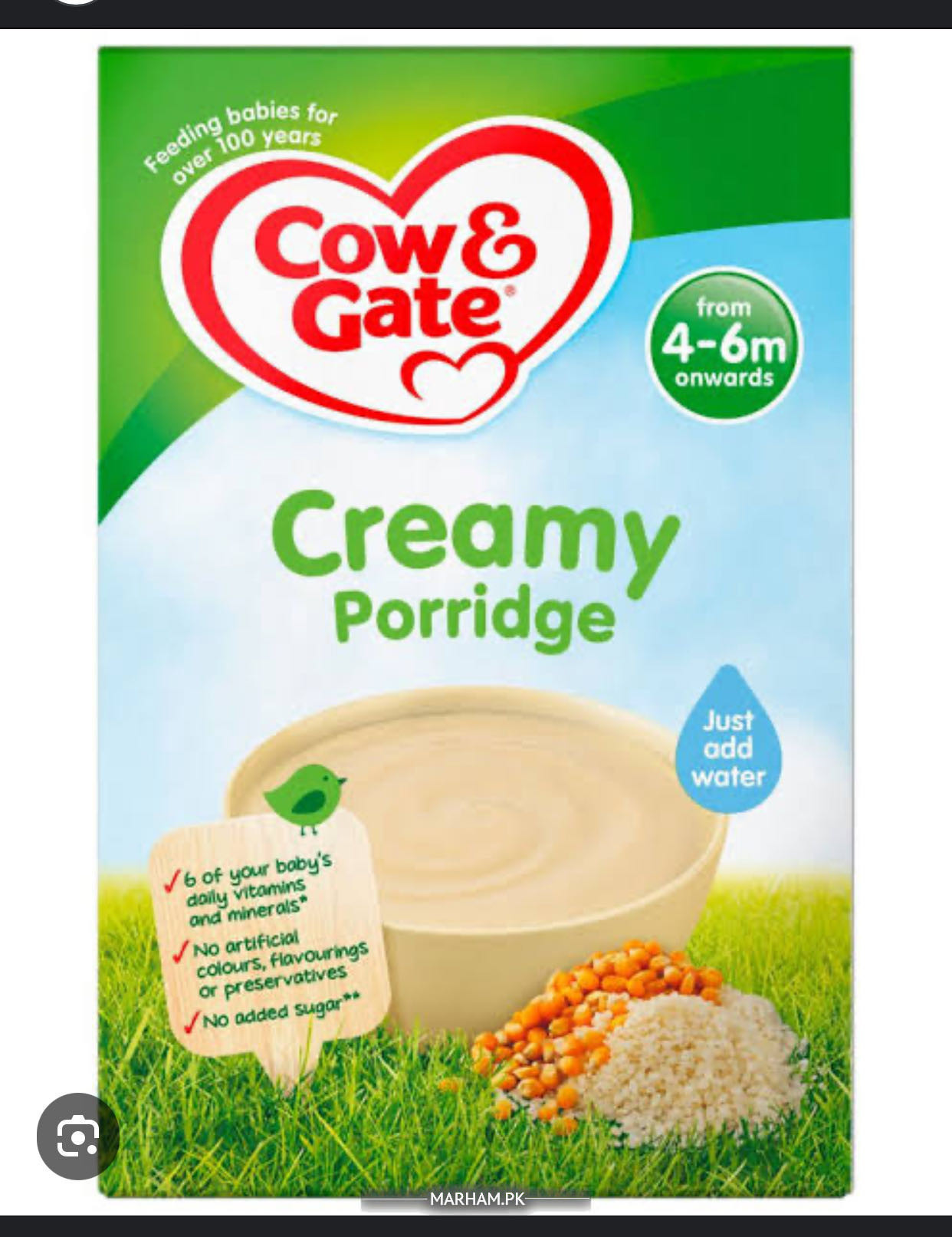 First food is called as Weaning food, which is started at 6 month of age, i-e Yogurt, Banana, Khachri, Crealac rice etc.