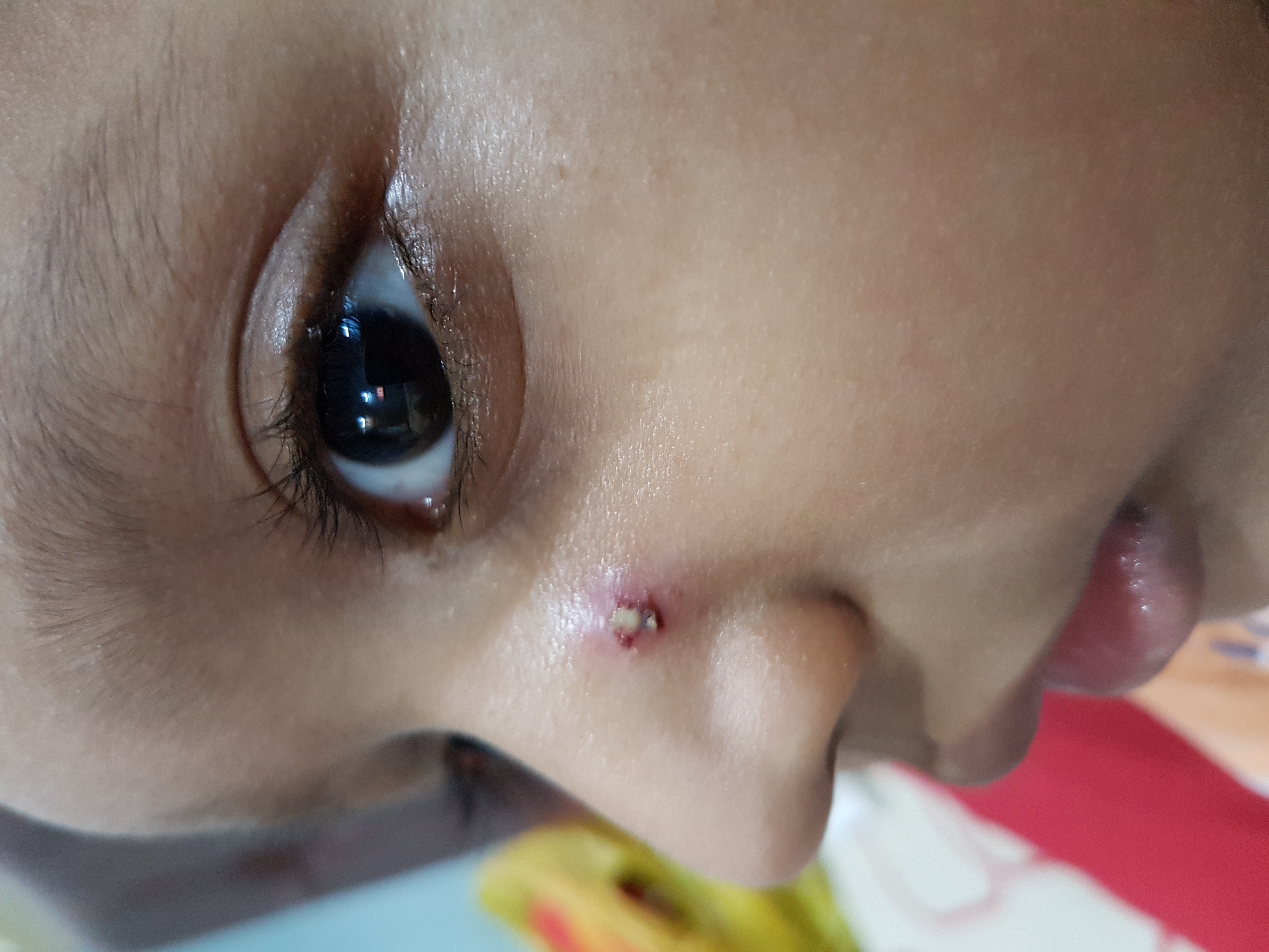 it look like pustule you start oral cefaclor 125 mg 8 hourly 5 days along with application o fusidine cream do not press it