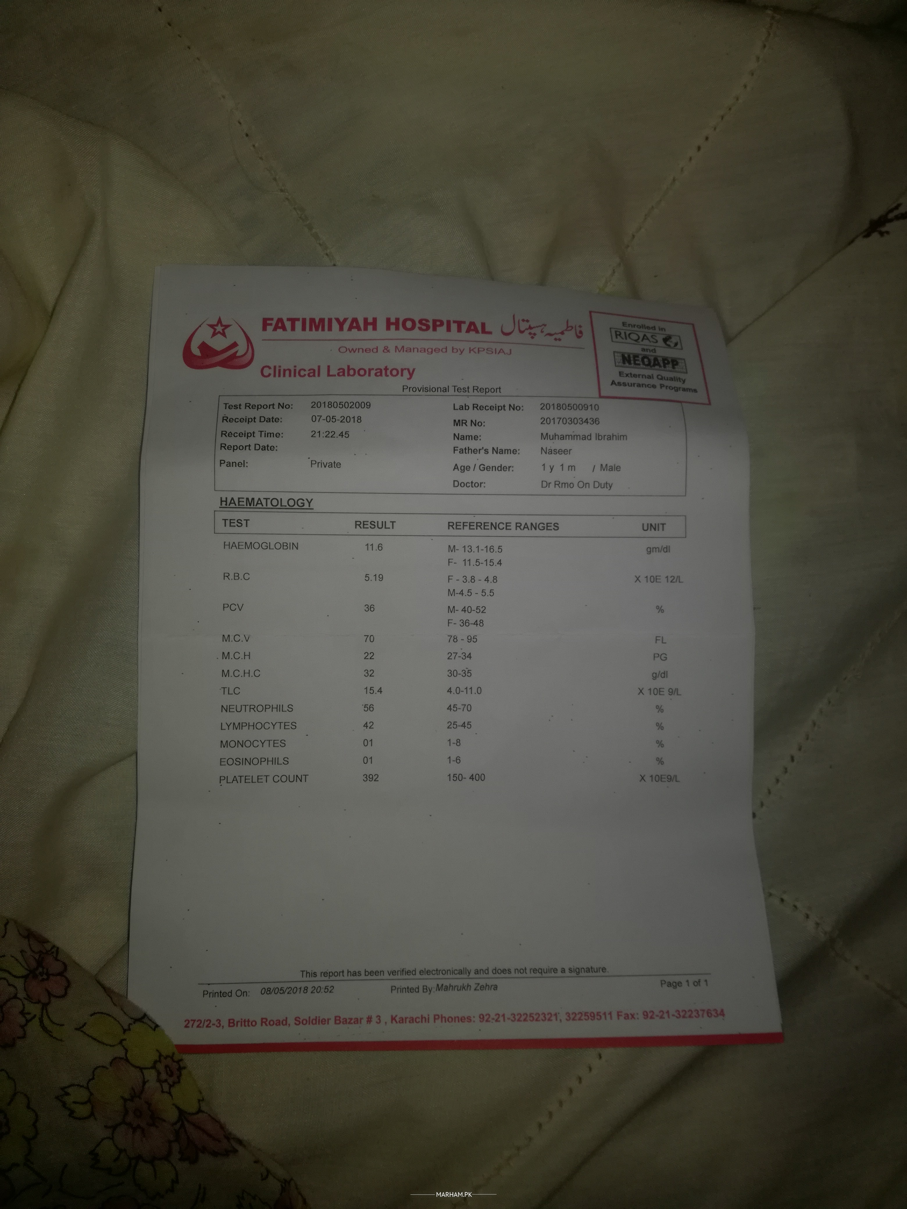 mera beta 1sal 1month ka hai ye uxki blood test report haii bta dyn kia prblm haii