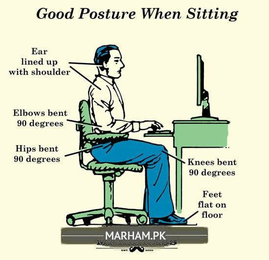 yeah you can see the image i attached it will help you if you want to work in a sitting position just keep in mind such normal habits you will see the difference soon