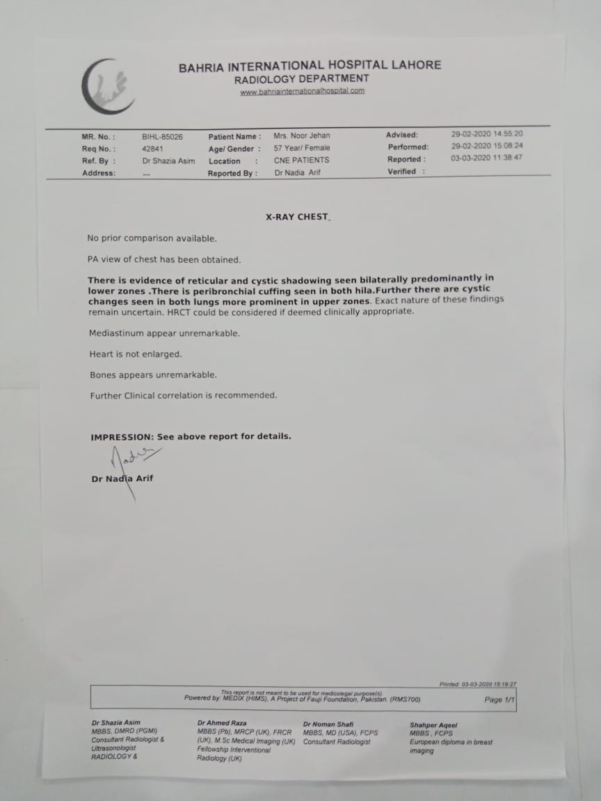 My mother has cough for quite some time these are her xray reports. Can any doc reccomend whats the issue who should we consult as in best pulmonologist in lahore