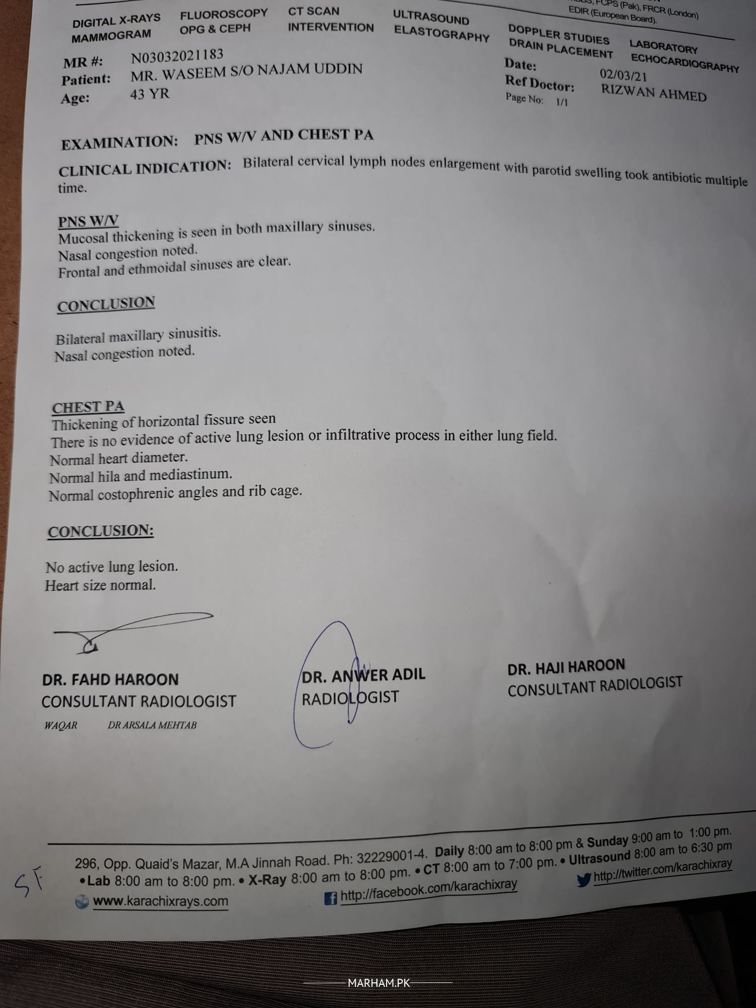 Sir main ne aur koi test nhi karaya kia mujhe further investigate kerna chahiye