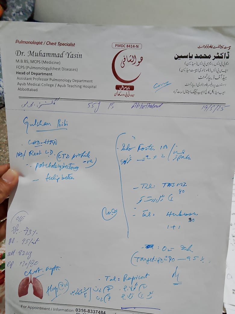 Consultation at nearby Pulmonologist is required. Problem not discussed. If not Satisfied with current Physician, switch to other for 2nd opinion.