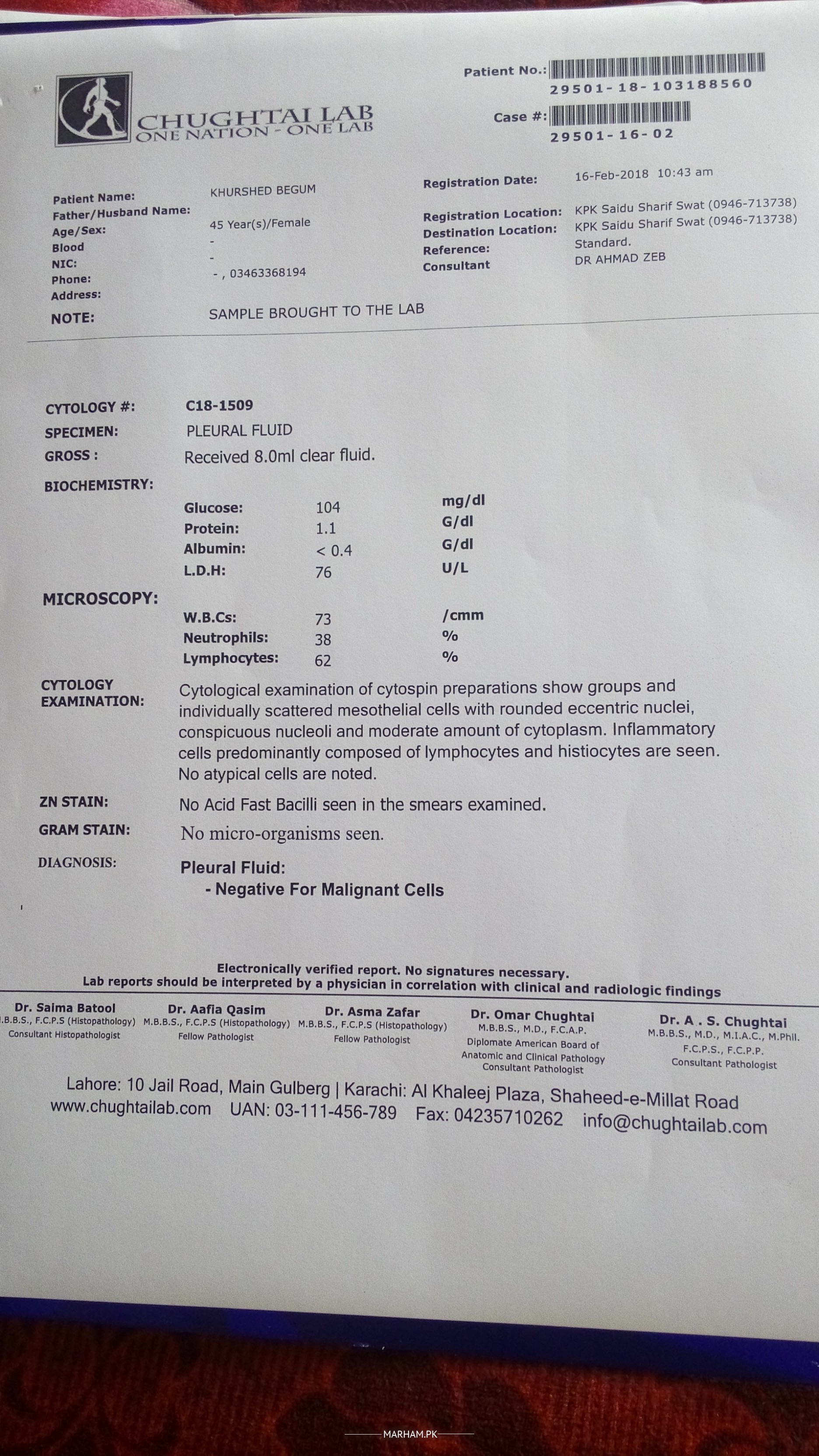 some one tell me especially pulmonalogist, what is in the pleural tap report and what is the cause of this.?how to stop it from reoccurring.. please??