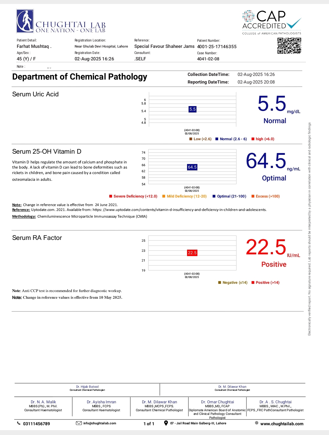 Asking for Self, Female, 55 years old, Lahore