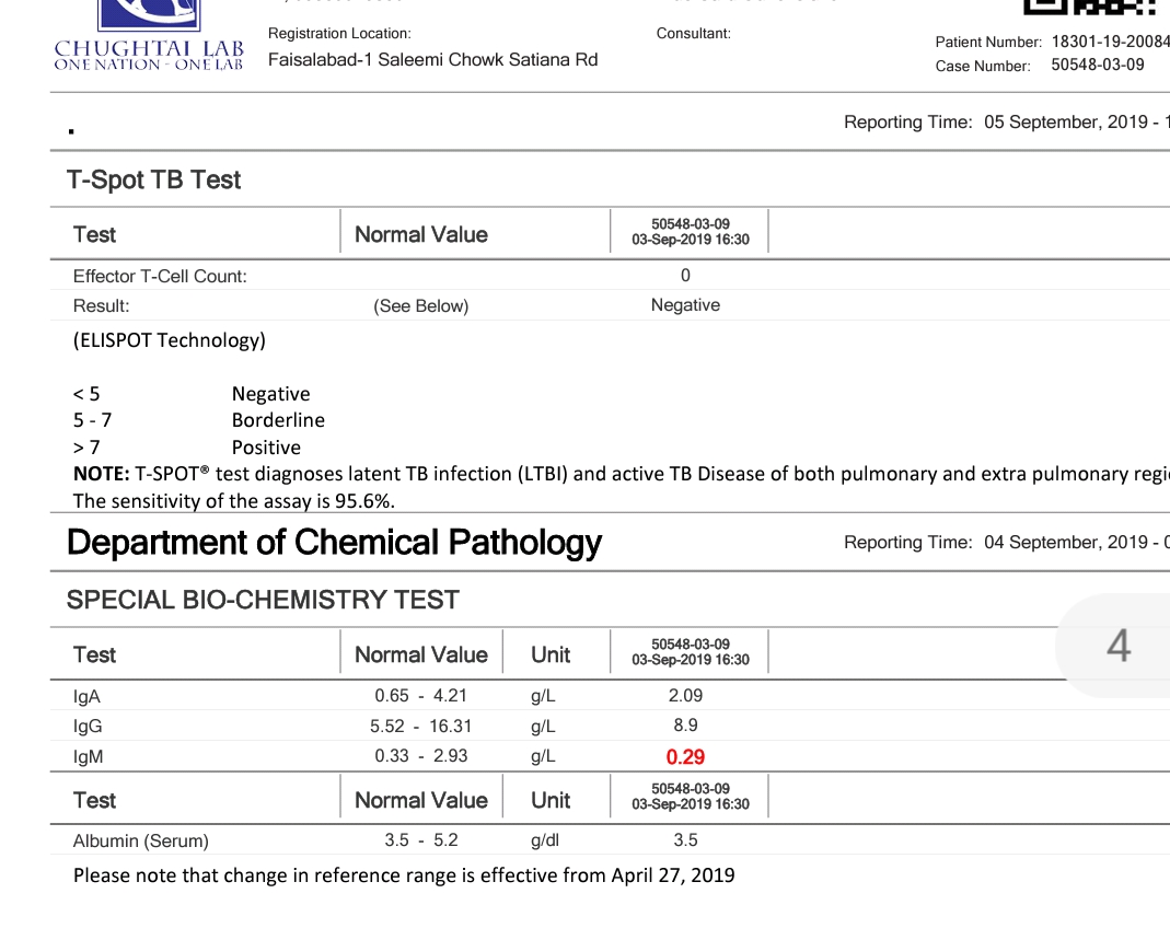 Ristova is a Biological Disease Modifying drug and is very costly drug, so the decision about Ristova can not be taken online. These lab reports should be seen in context with clinical picture.