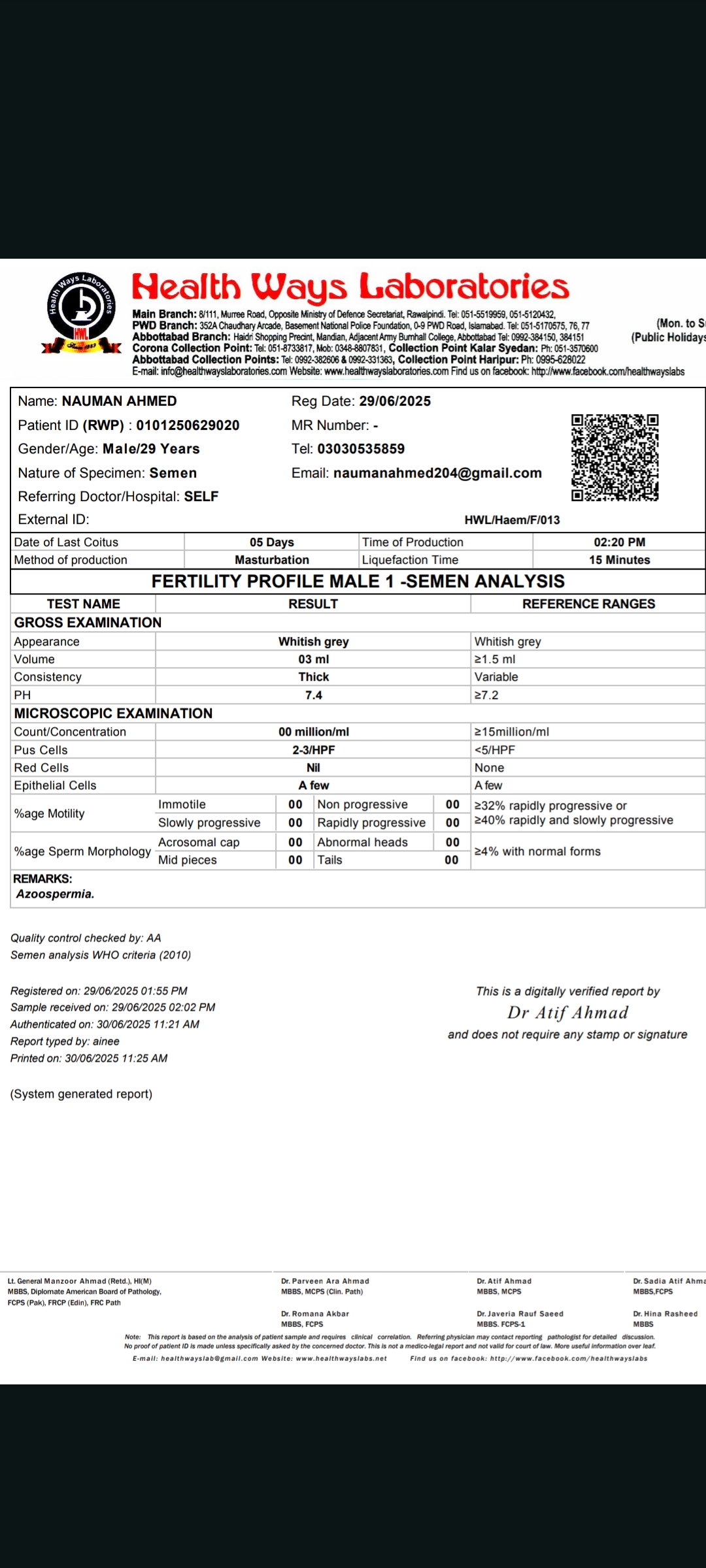Recently meny apna test krwaya tha semen analysis ka. Us ain mujhy pta chala k mujhy Azoospermia hy. Us ka kiya elaj hy kiya ap mujhy bta sakty hen plz...