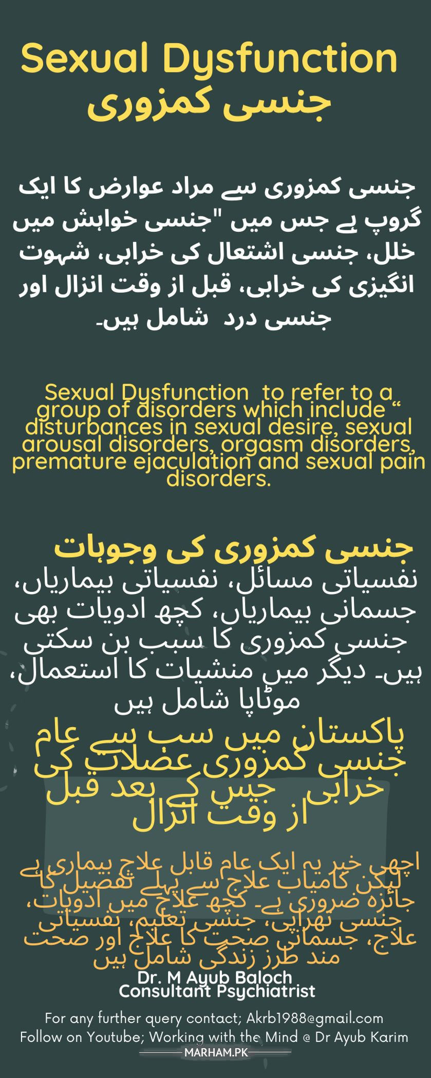 Be reassured these all sexual condition are treatable and usually related to some underlying psychological issues.