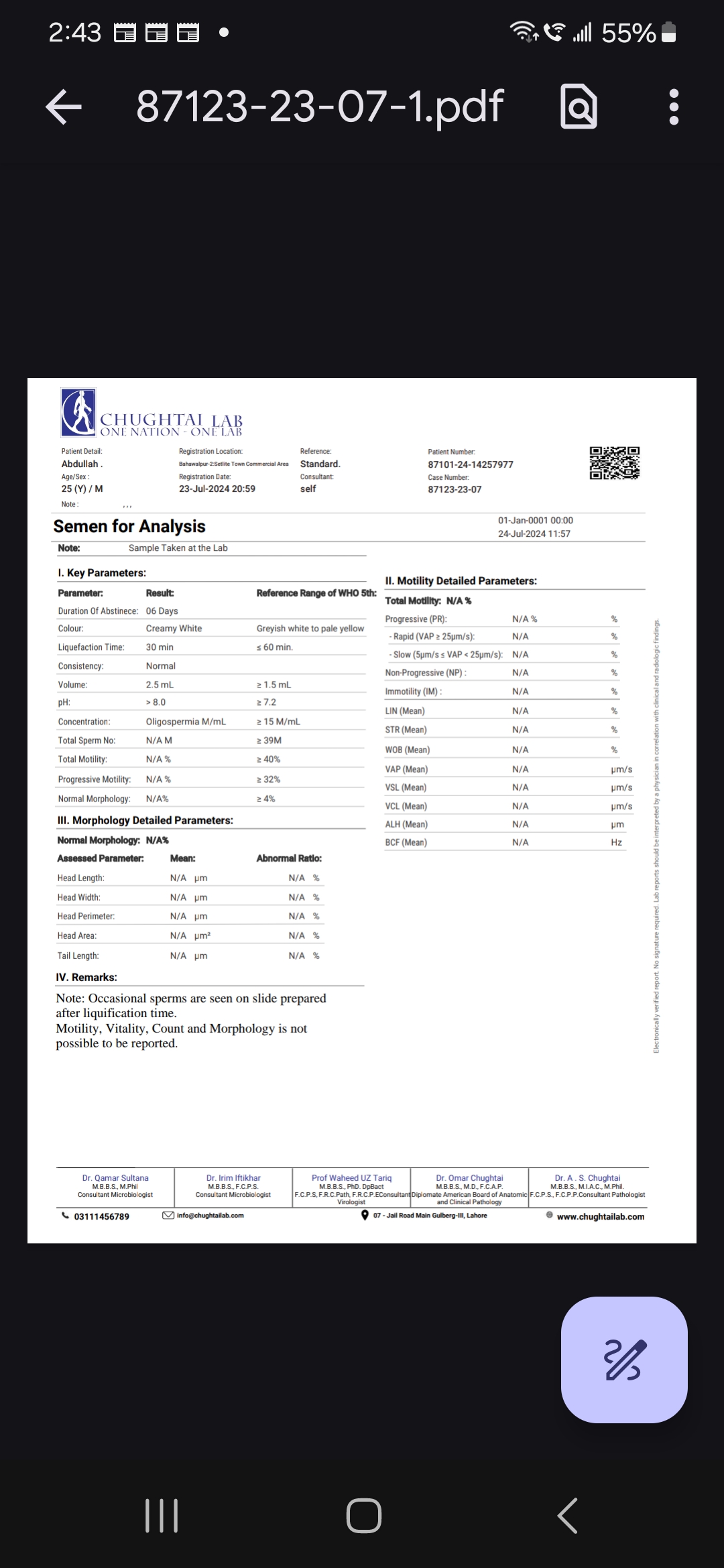 What does this report suggest do i have oligospermia aur azospermia Cause my consulting doctors say i have azospermia but i have chances 10% but in report it says oligospermia i'm worries plz tell thank my Fsh Lsh, Hb1ac & testicular reports are normal.
