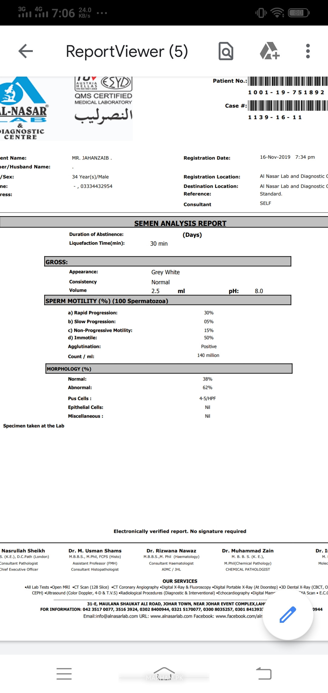 i v got two miscarriage in a row... my dr said that it is repated to husband. she asked me for his seman anylsis.. and here it is... kindly tell me is it ok?