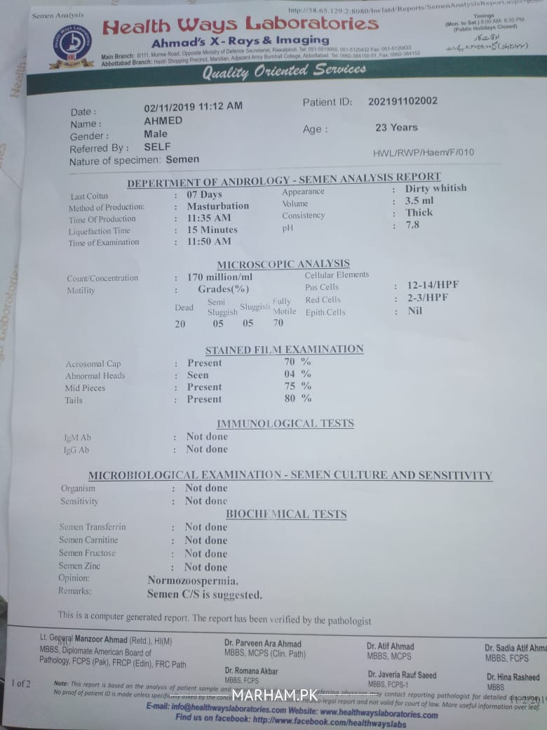 Ye bad result nhi ho jaiga inshallah.. ap ajaiay Islamabad blue area Khyber plaza biogen lab.