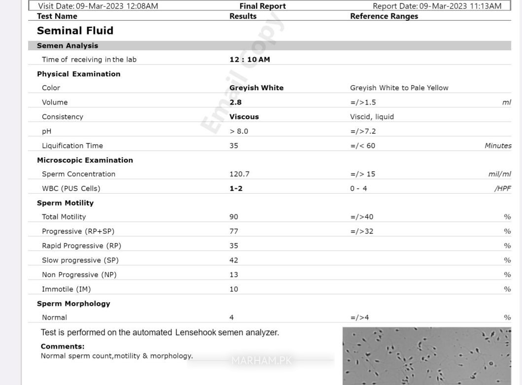 Semen analysis report is normal .