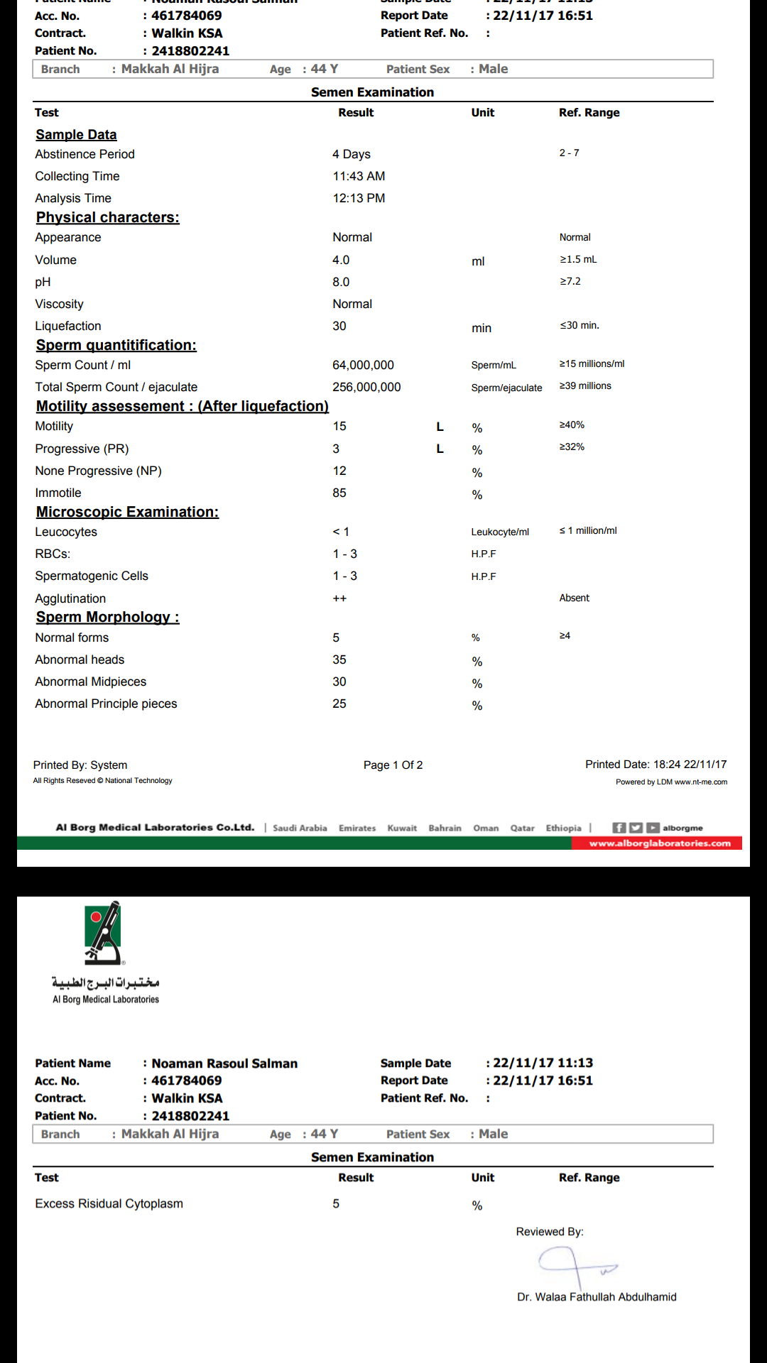 Consult a urologist. If can see that you had this test from KSA.
